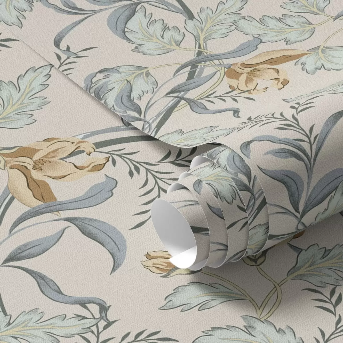 Tapeet Vintage lilled sinise lehega kreemika taustal Nr. a00717