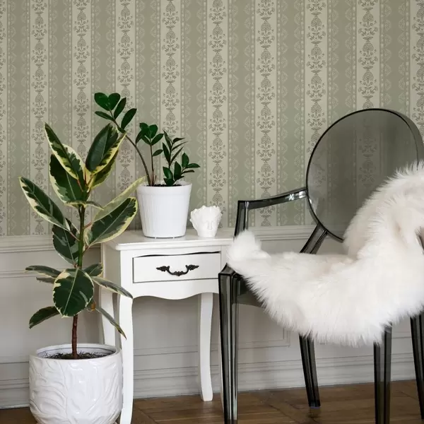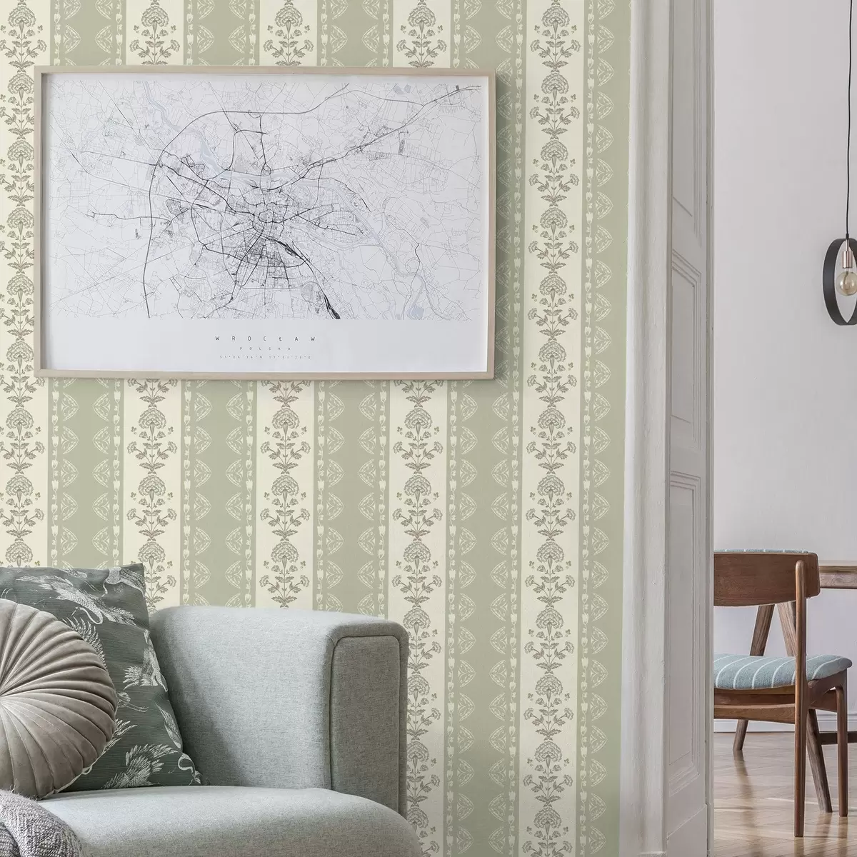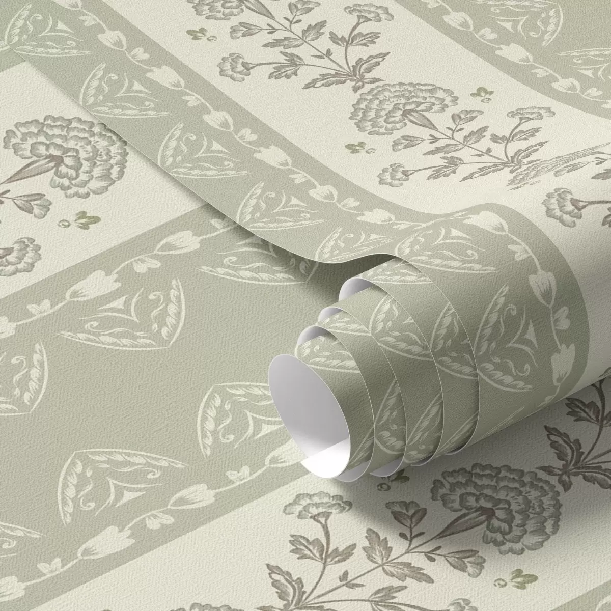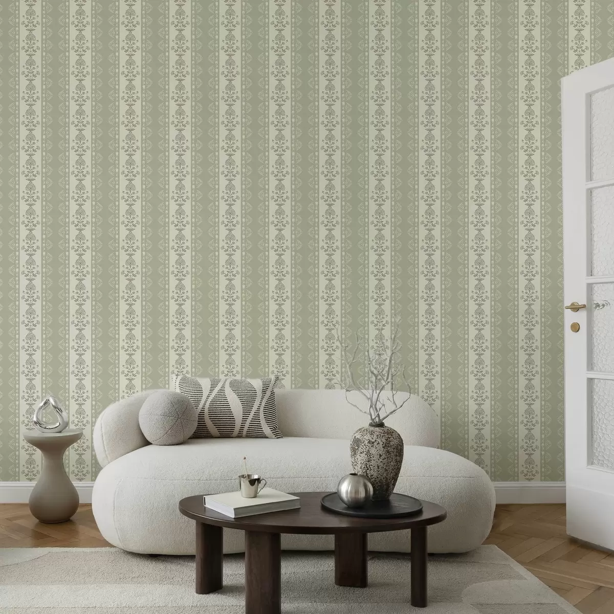 Tapeet Triibuline ornament lillede ja salvei toonides a00719
