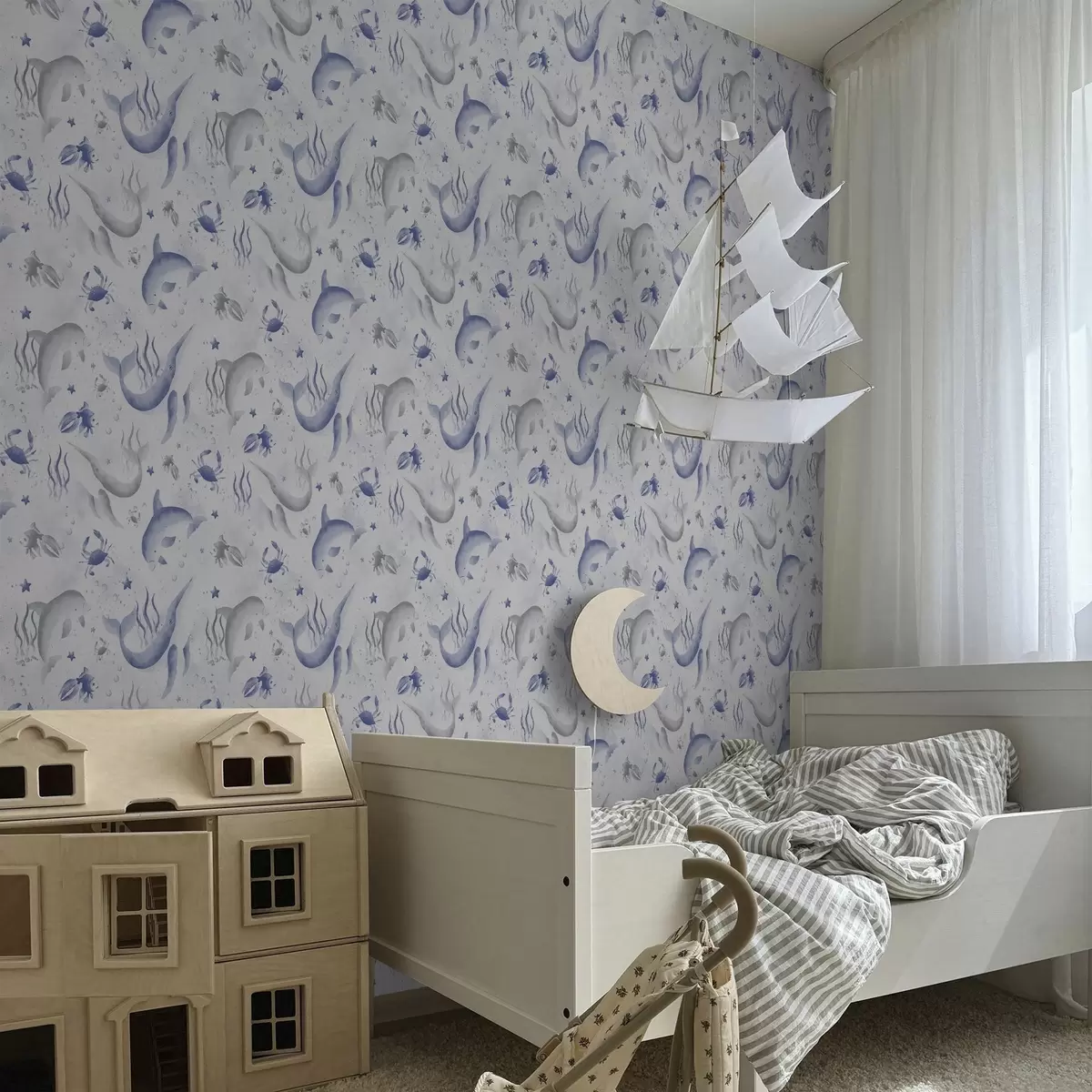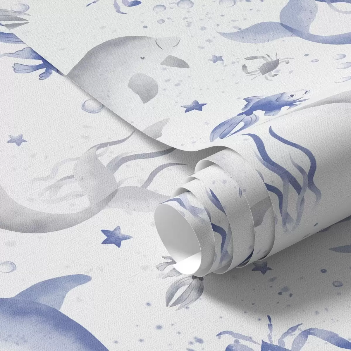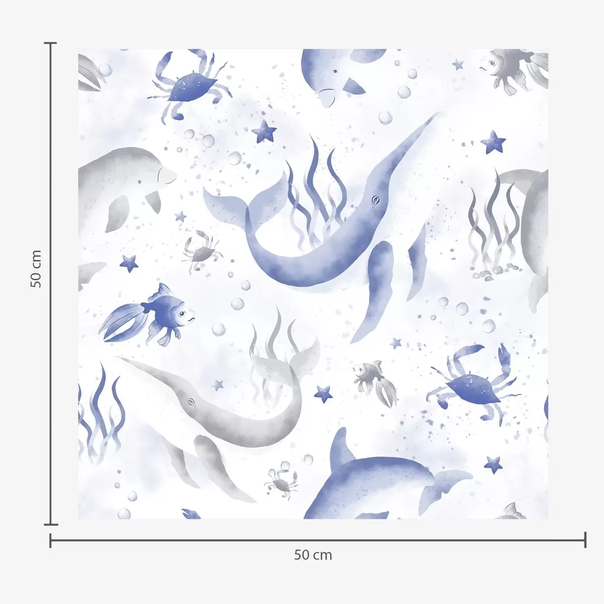 Tapeet Sinistes toonides merevaalad ja delfiinid valgel taustal Nr. a00720v1