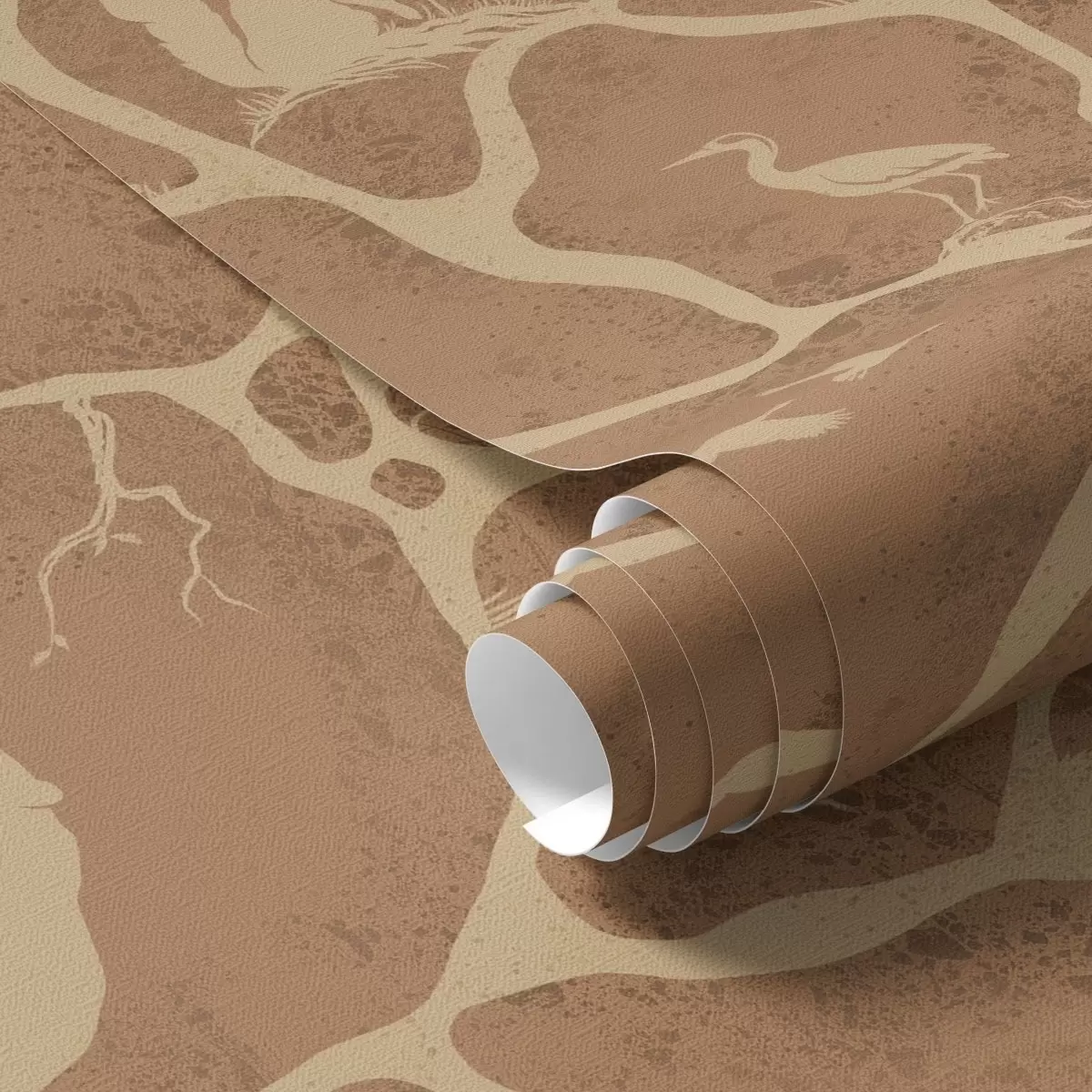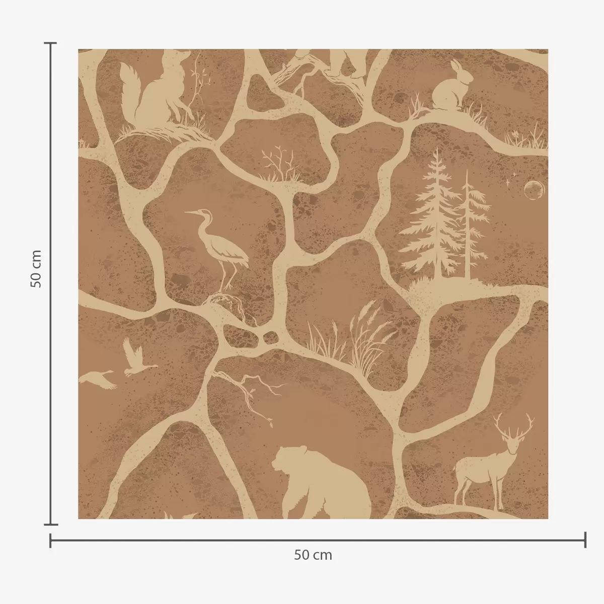 Tapeet Loomade ja puude siluetid looduslikus maastikus kivise tekstuuriga Nr. a00727