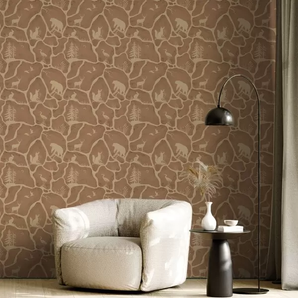Tapeet Loomade ja puude siluetid looduslikus maastikus kivise tekstuuriga Nr. a00727