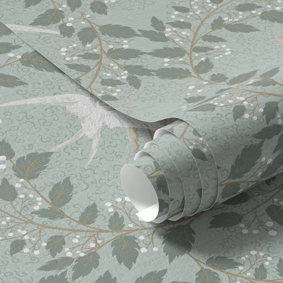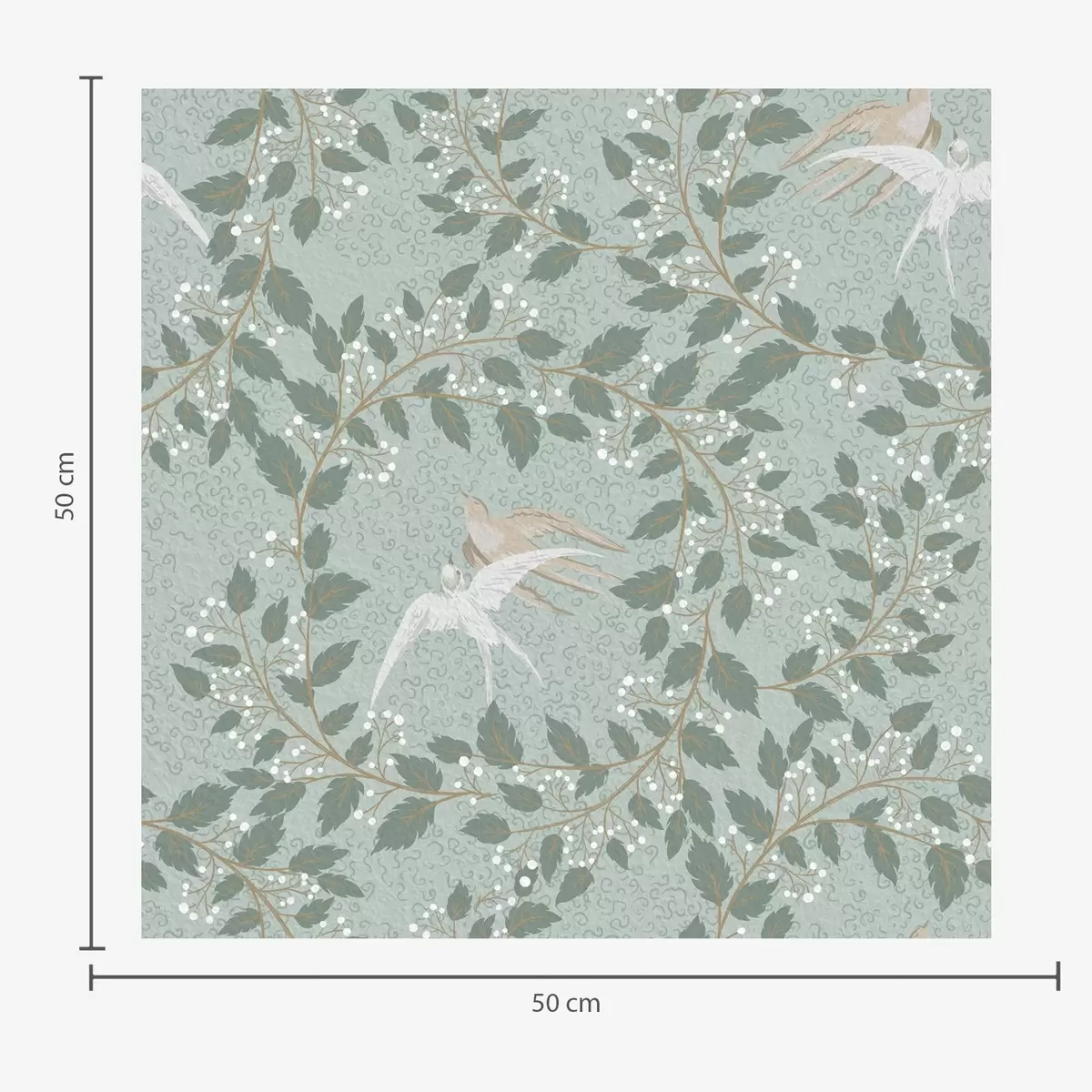 Tapeet Oksad valge marjade ja lindudega rohelisel taustal Nr. a00731