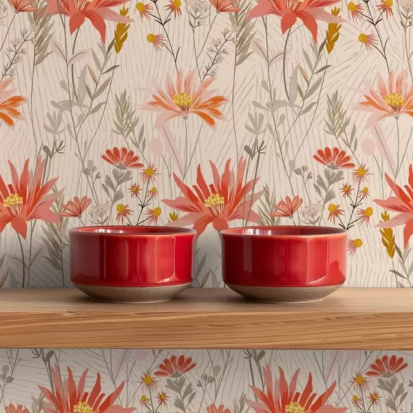 Tapeet Soojades toonides looduslilled beežil taustal Nr. a00751