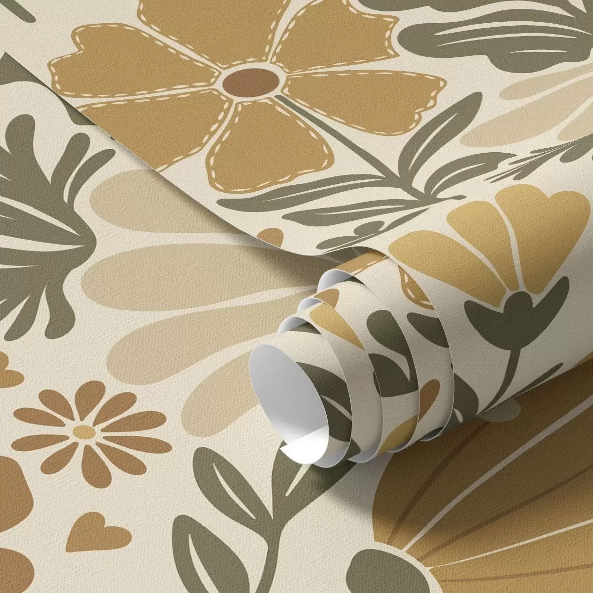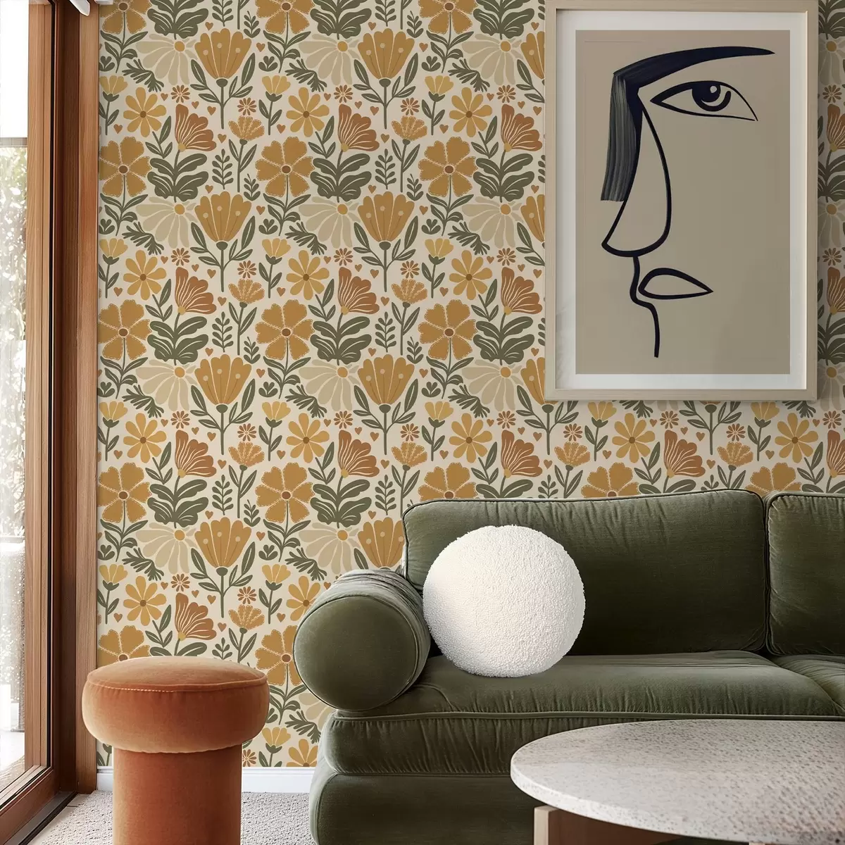 Tapeet Stiilseid lilli soojades toonides südametega Nr. a00752