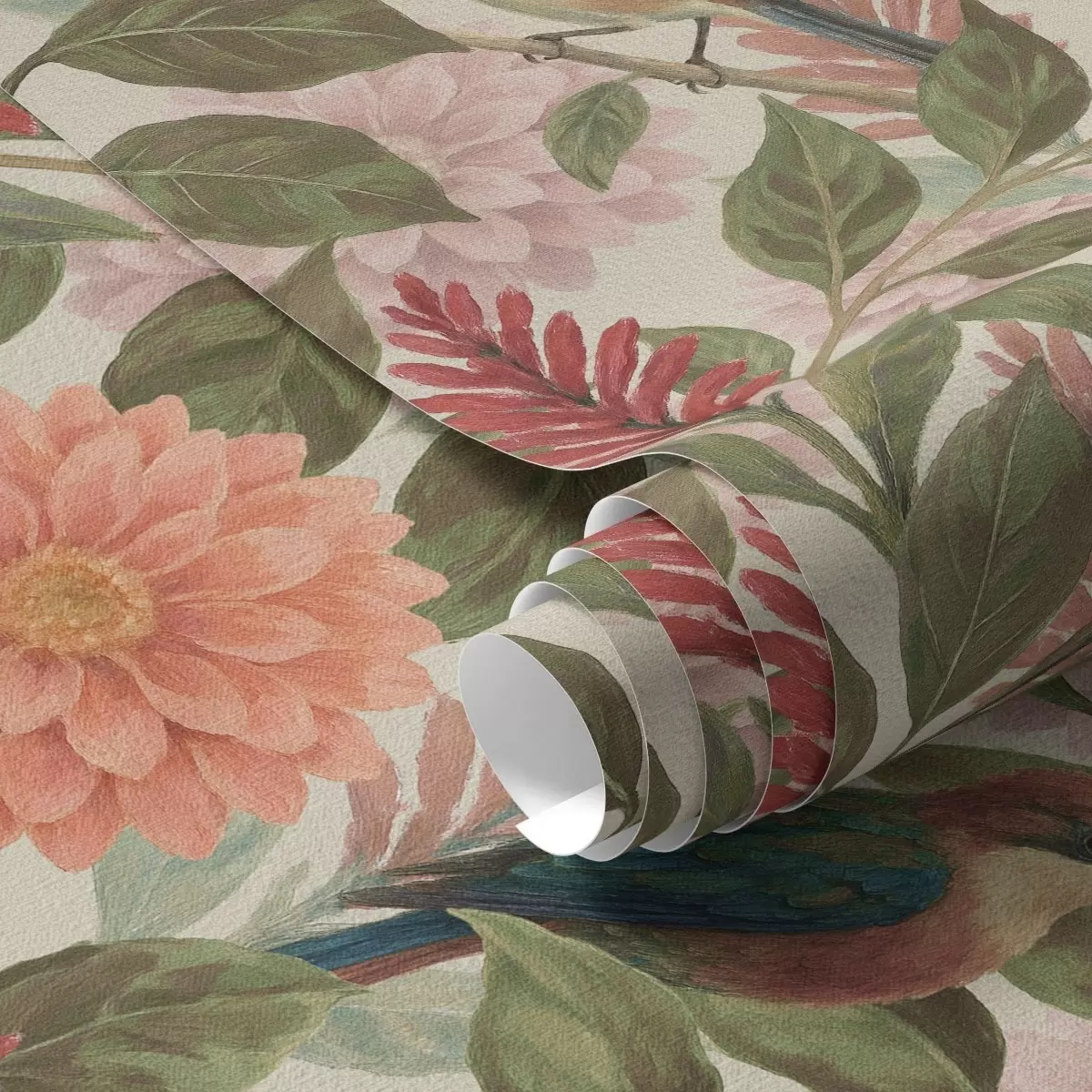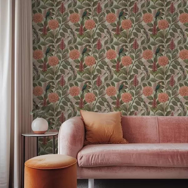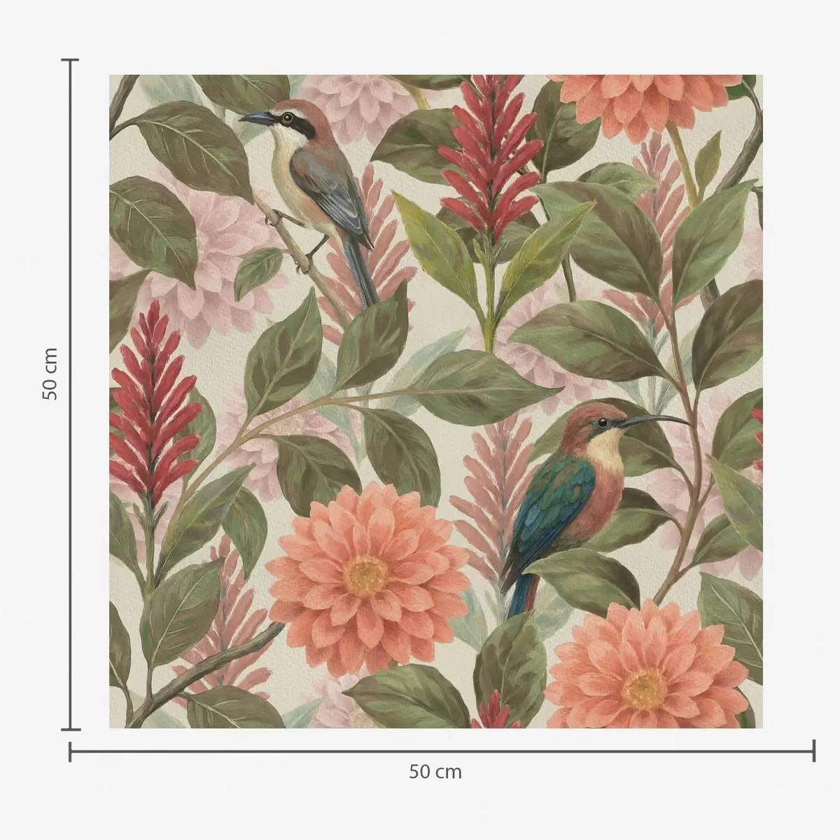 Tapeet Linnud lillede ja lehtede seas soojades toonides Nr. a00753