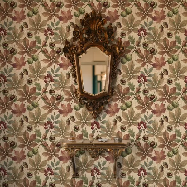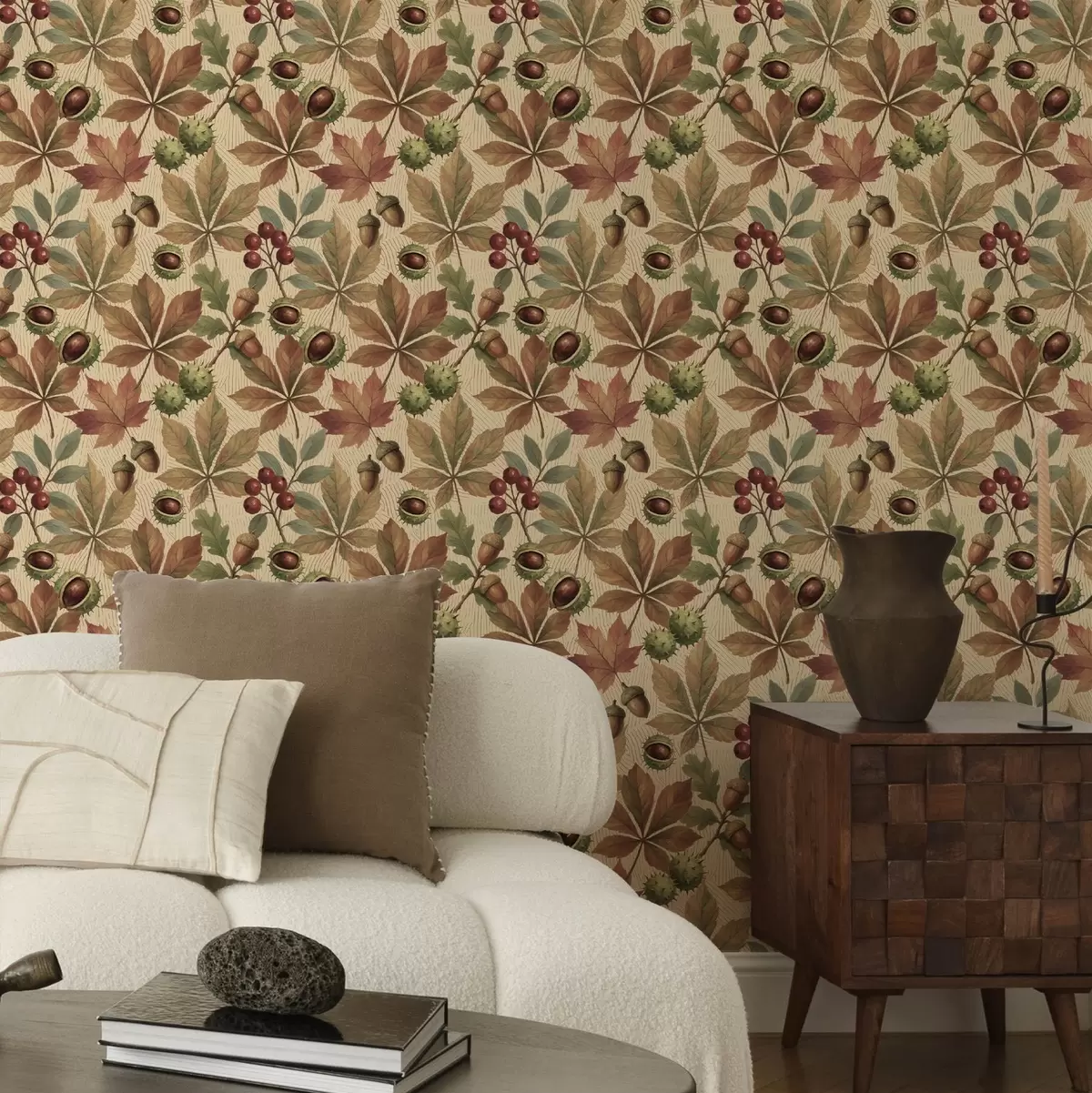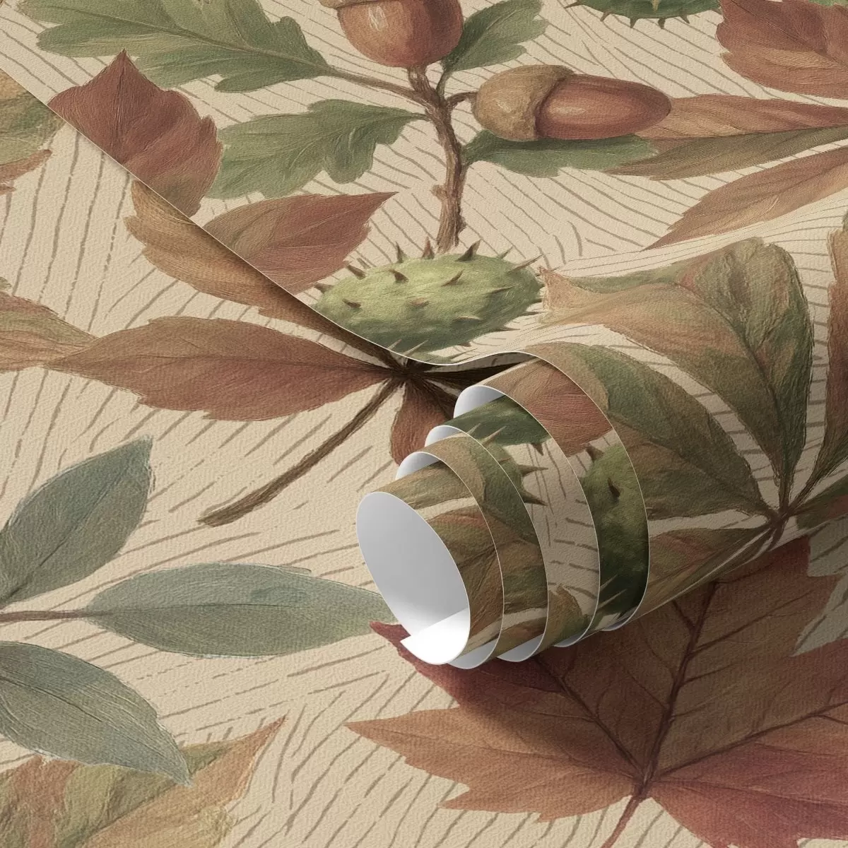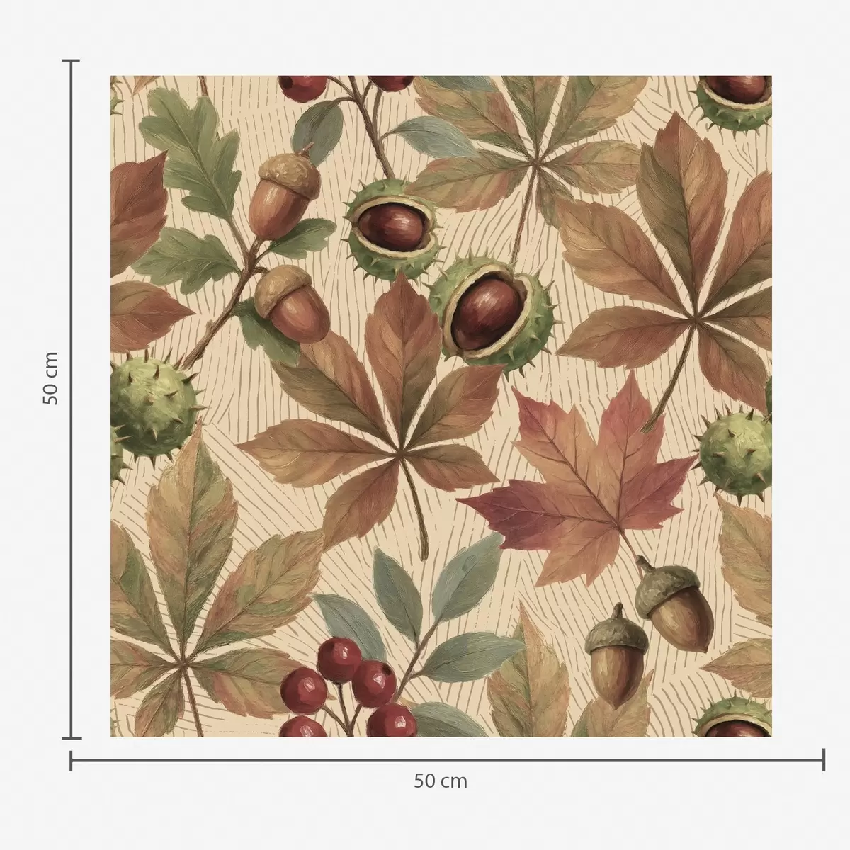 Tapeet Sügislehed, tammetõrud ja marjad beežil taustal Nr. a00754