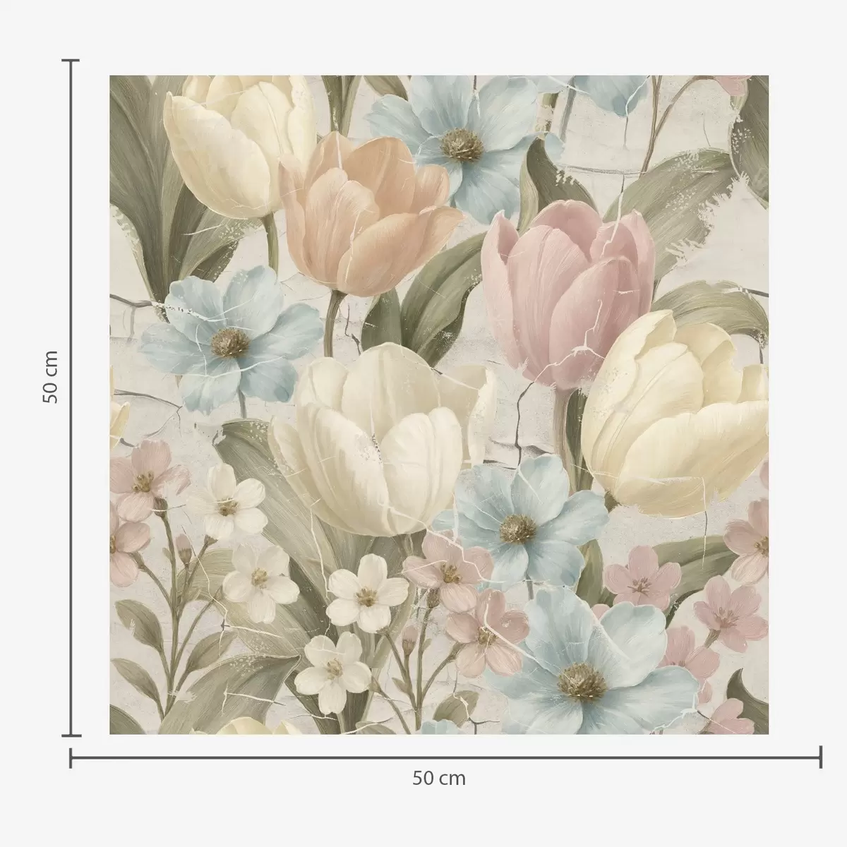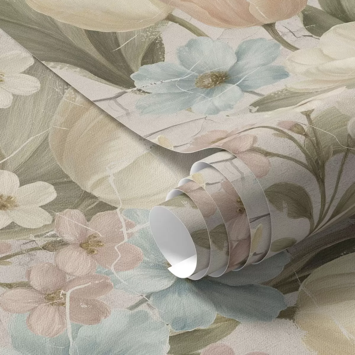 Tapeet Pastelltoonides tulbid ja lilled heledal pragunenud taustal Nr. a00756