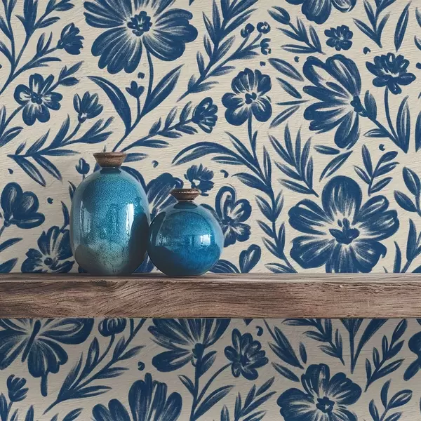 Tapeet Sinine lilleornament liblikatega Nr. a00758