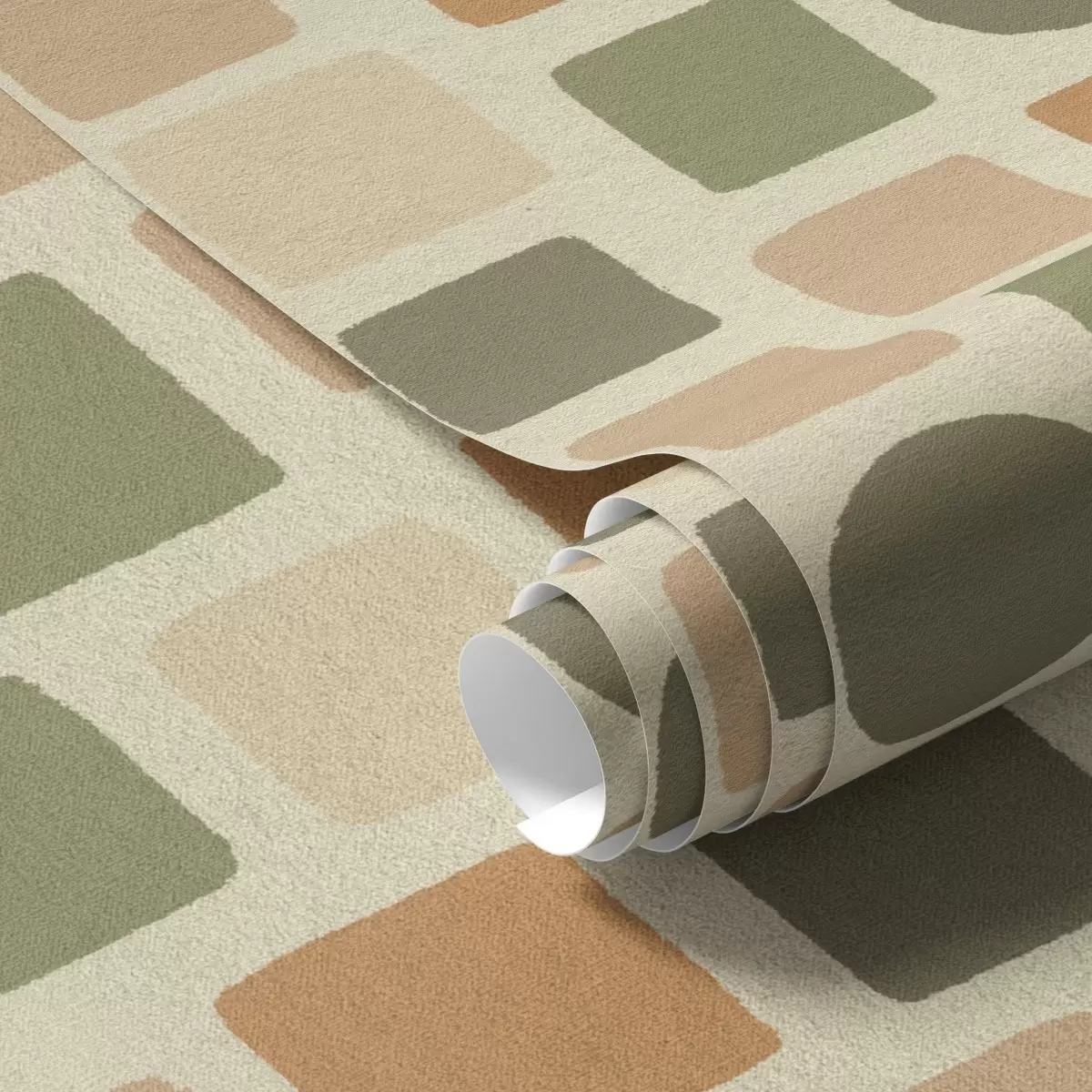 Tapeet Soojades toonides ruutude ja ringide geomeetriline muster Nr. a00759