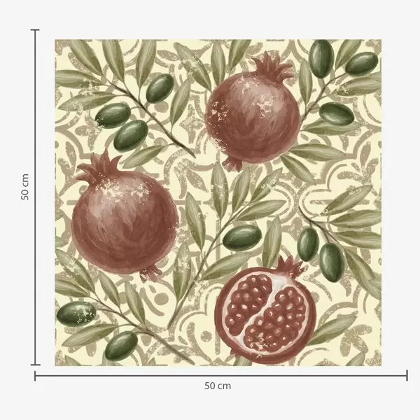 Tapeet Granaatõun ja oliivipuu oksad dekoratiivsel taustal Nr. a00764
