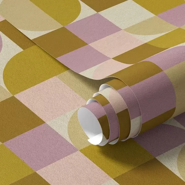 Tapeet Modulaarne geomeetria roosa ja sinepikollaste toonidega Nr. a00770v1