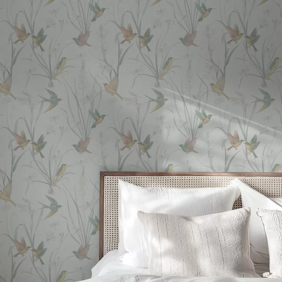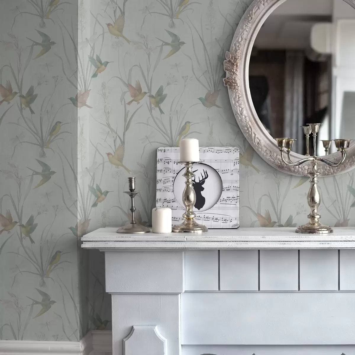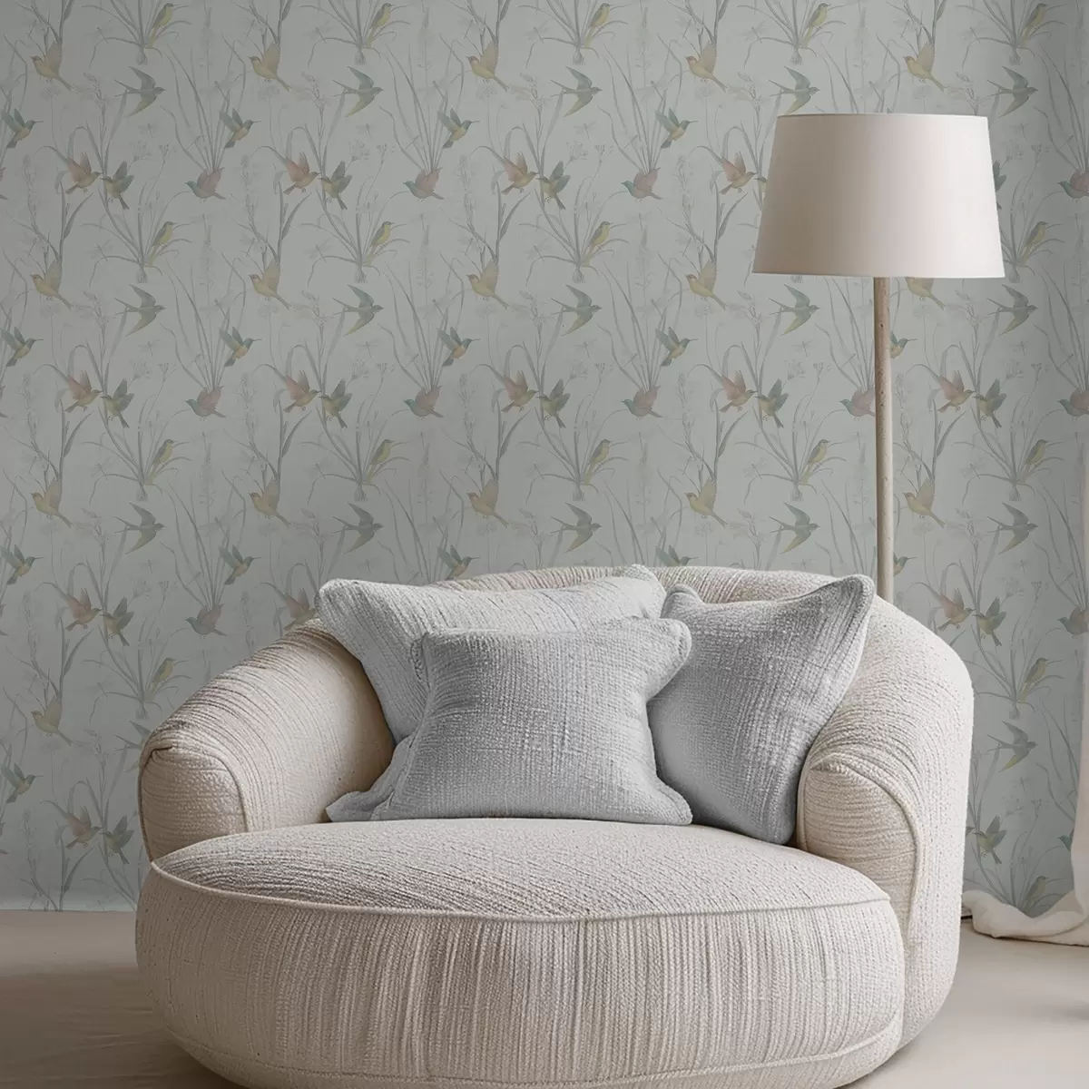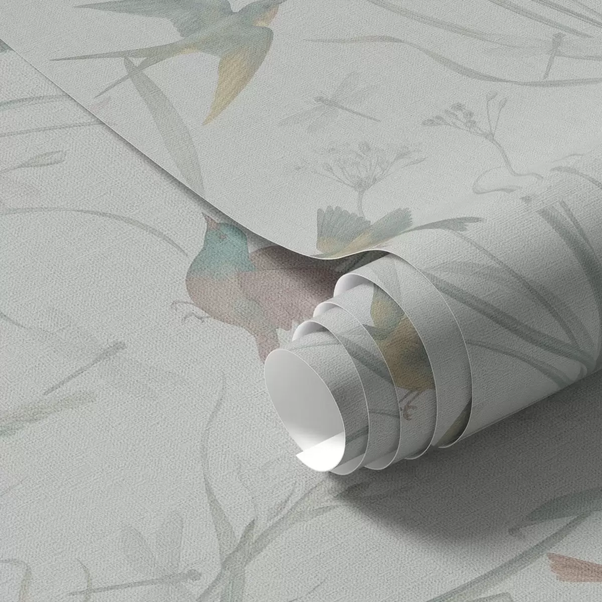 Tapeet Linnud helerohelisel taustal rohumaa rohtudes Nr. a00776v1