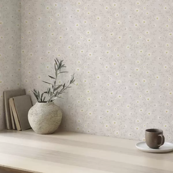 Tapeet Väikesed margariidid okstel, soe beež Nr. a00777