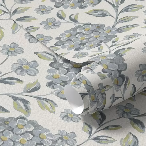 Tapeet Harjased õied ja lehed hallikassinises värvipalettis Nr. a00778