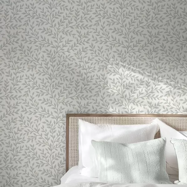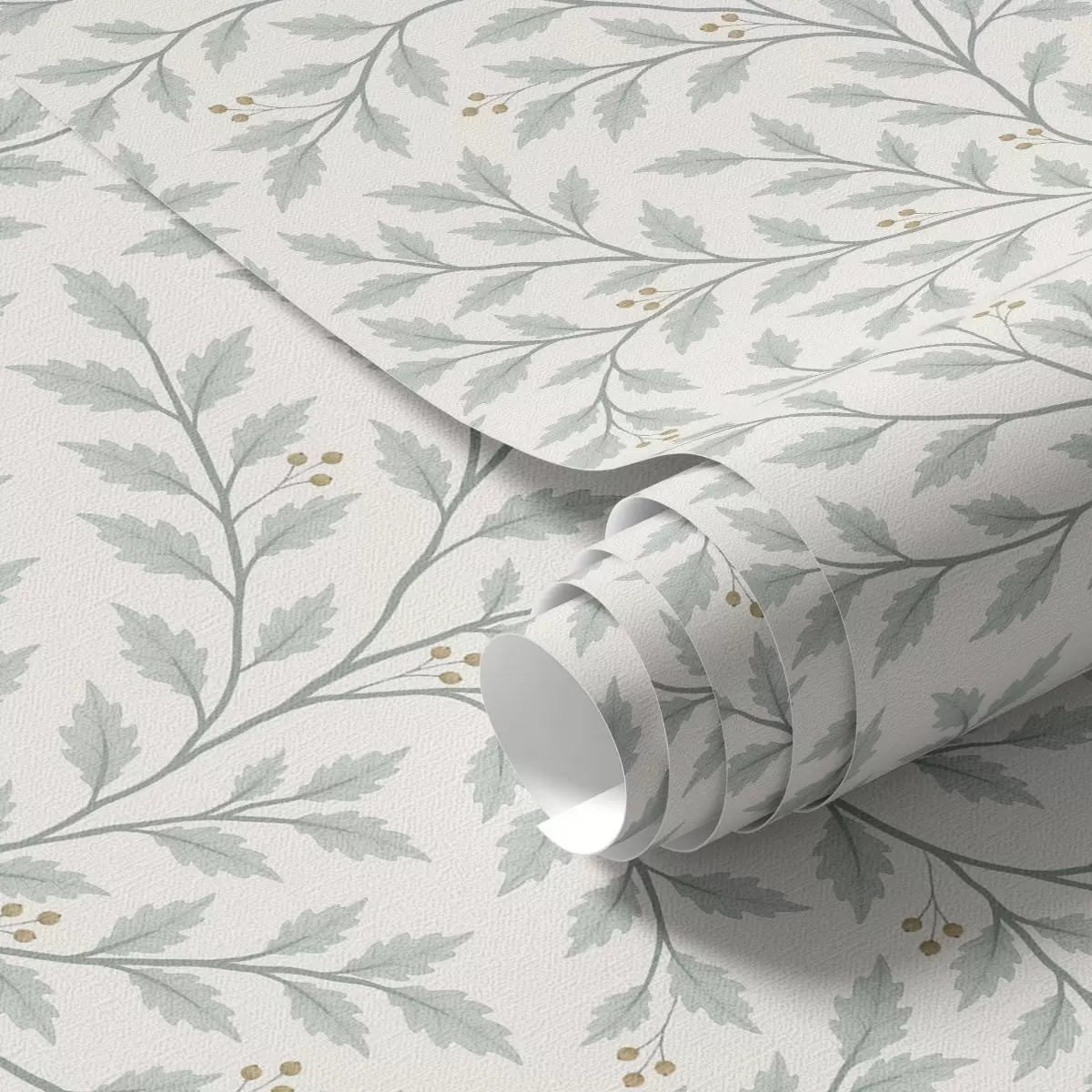 Tapeet Lehed ja marjadega oksad, helekreem ja salvei Nr. a00783