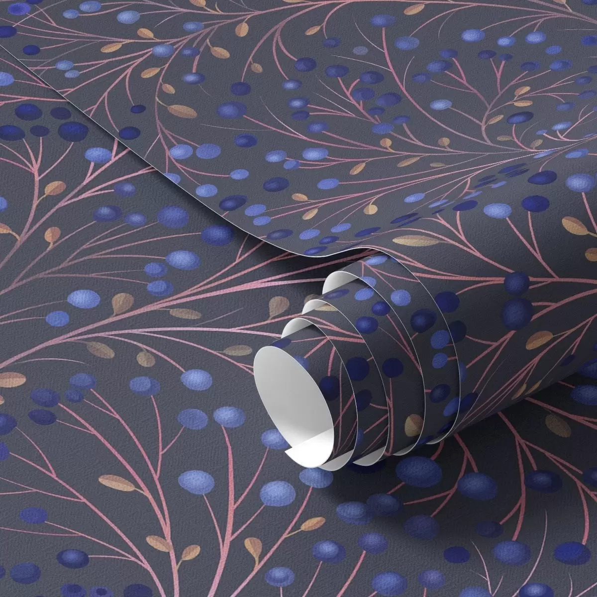 Tapeet Roosa-pruunid oksad ja sinised marjad grafiittahvlil Nr. a00787