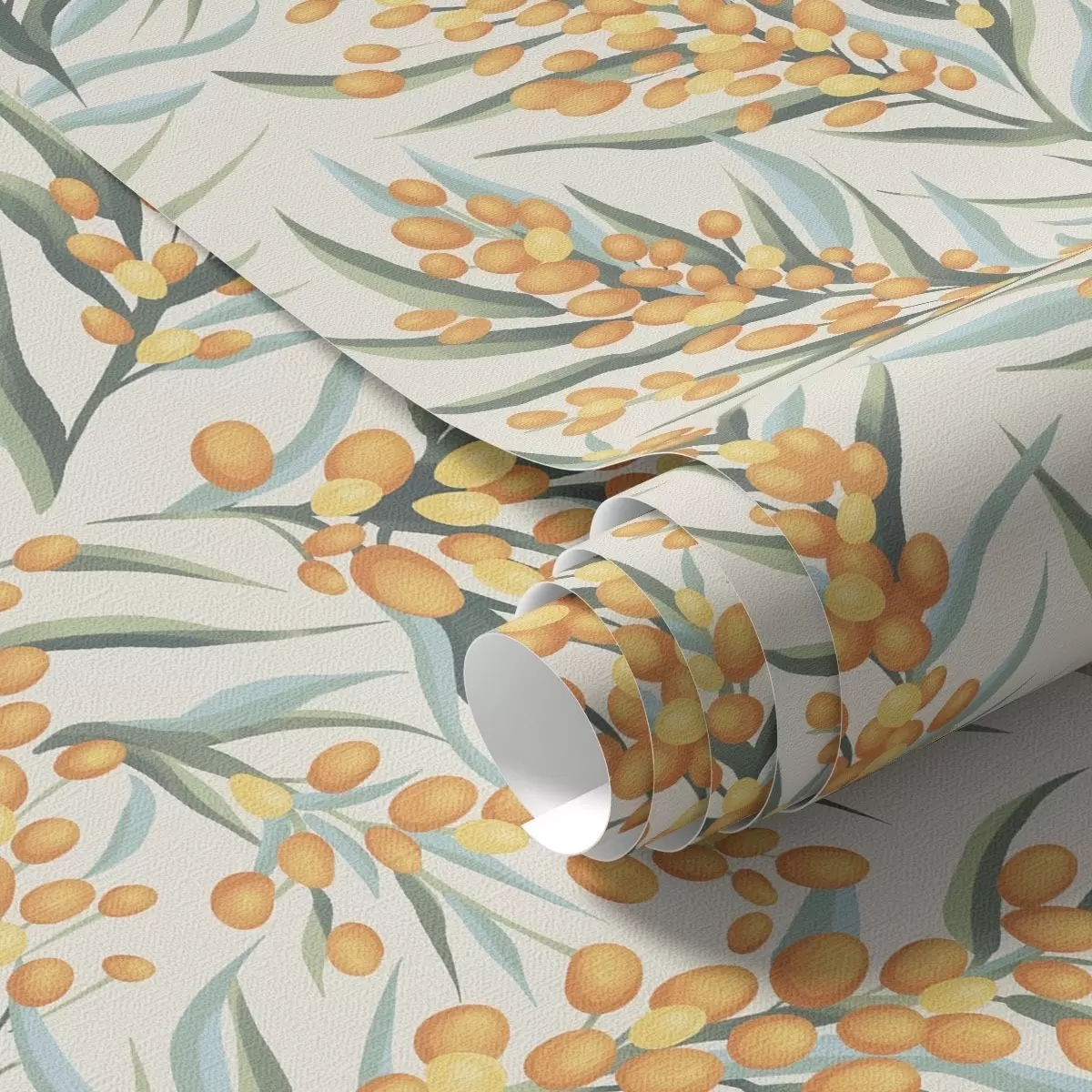 Tapeet Astelpaju oksad oranžide marjadega, hele taust Nr. a00792
