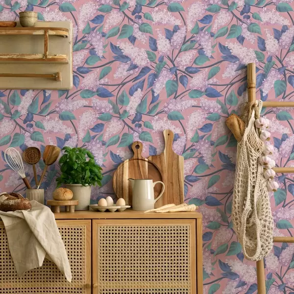 Tapeet Õrnad lilla õied roosal taustal, kevadine meeleolu Nr. a00797