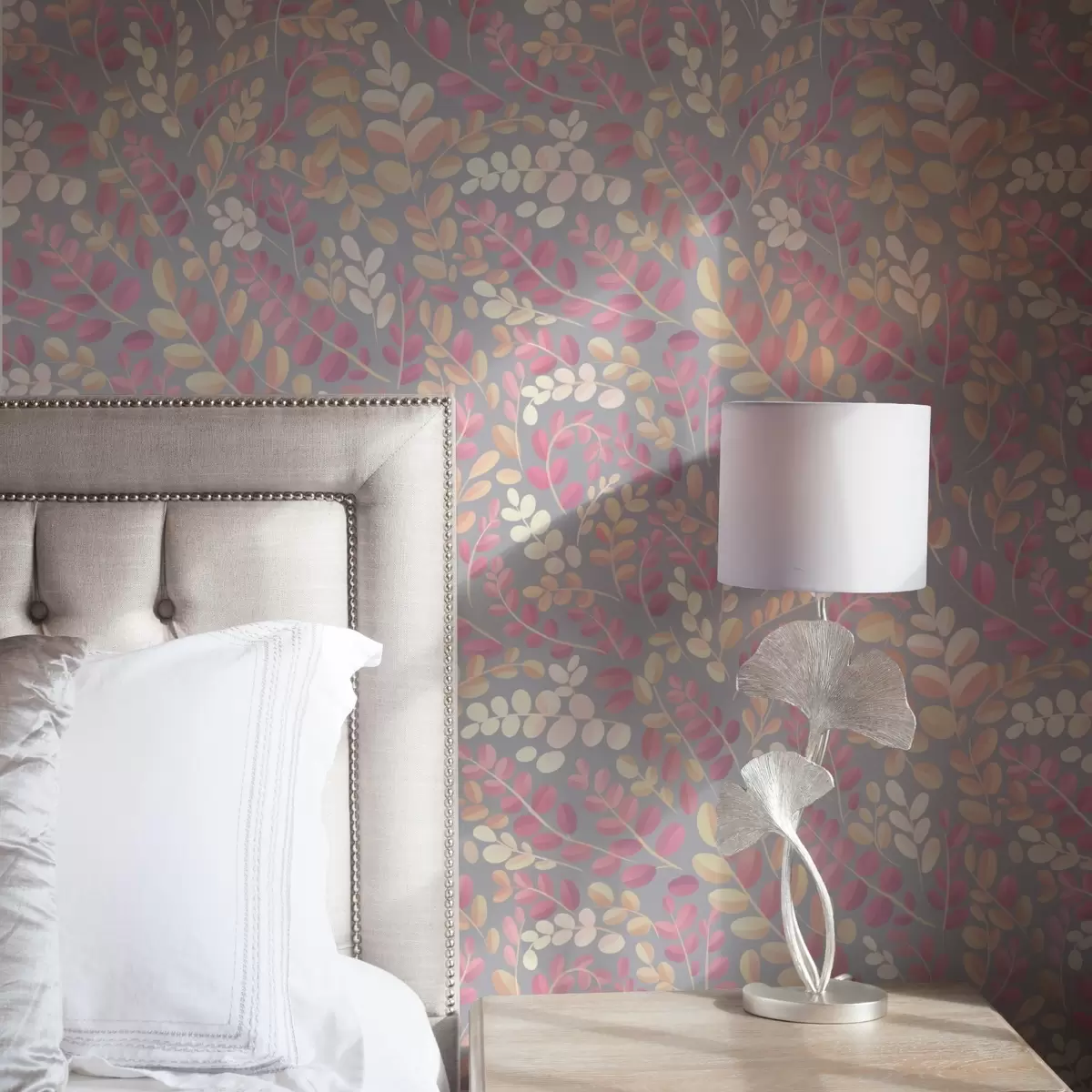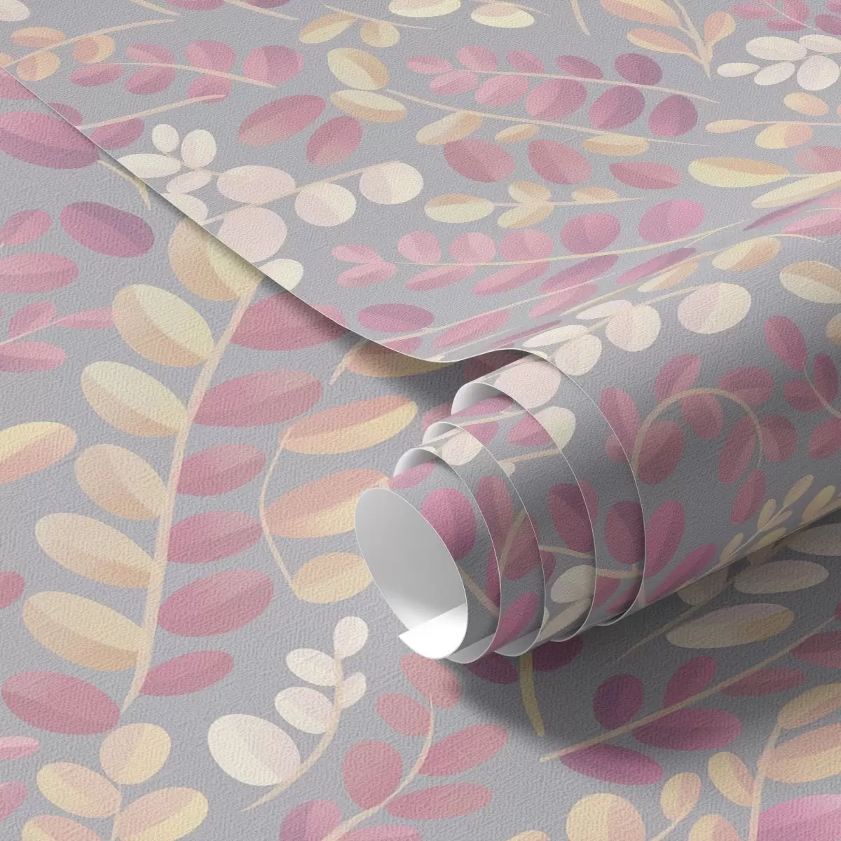 Tapeet Pastelltoonides oksad roosa-virsiku lehtedega hallil taustal Nr. a00799v1