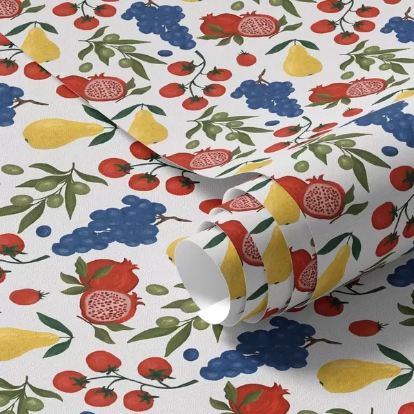 Tapeet Mahlakad puuviljad: granaatõunad, viinamarjad, pirnid valgel taustal Nr. a00801