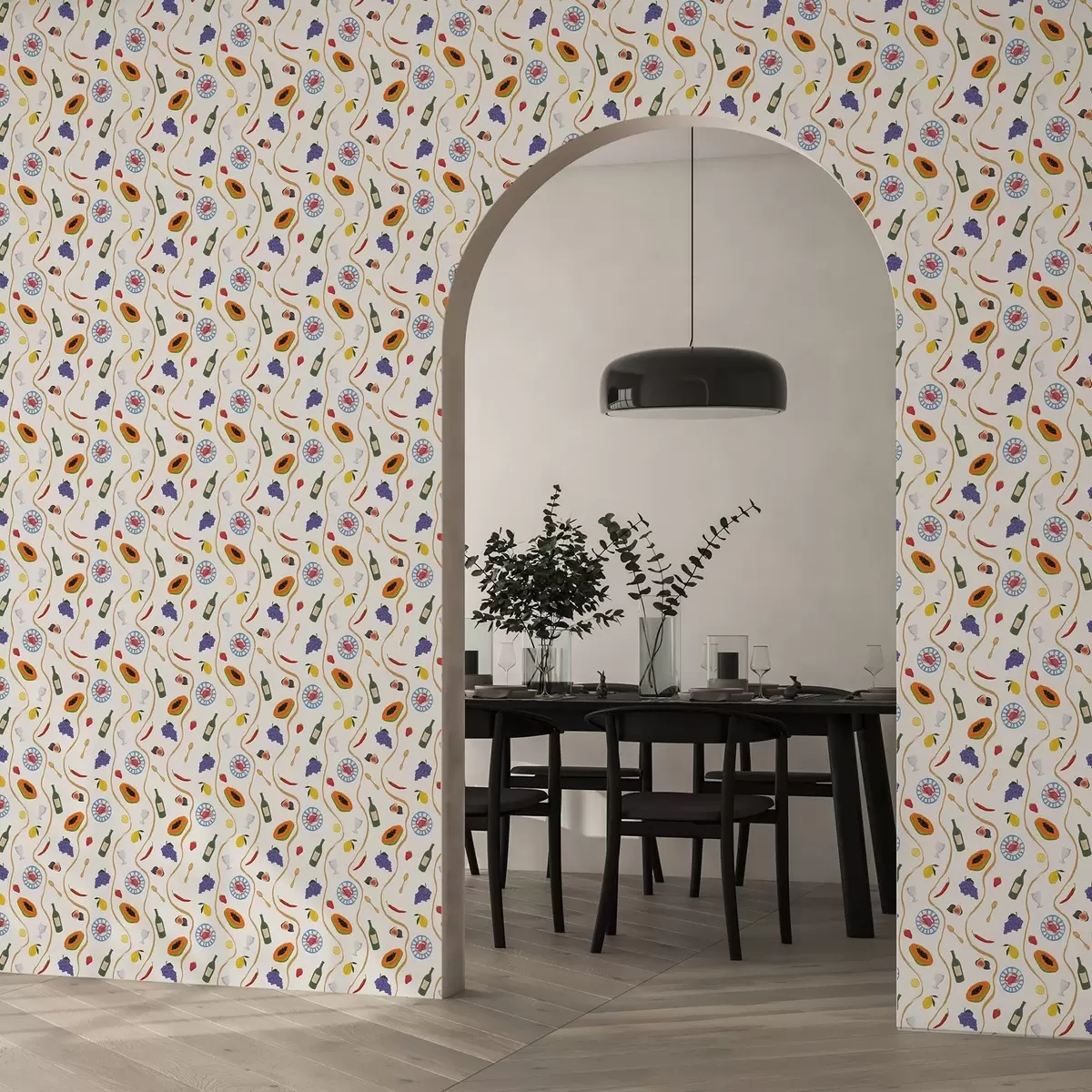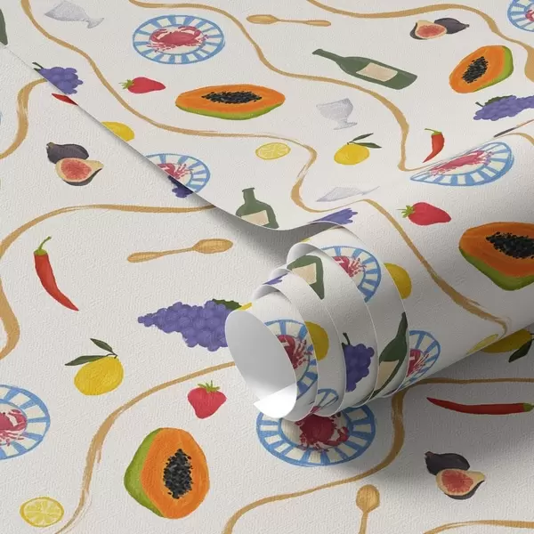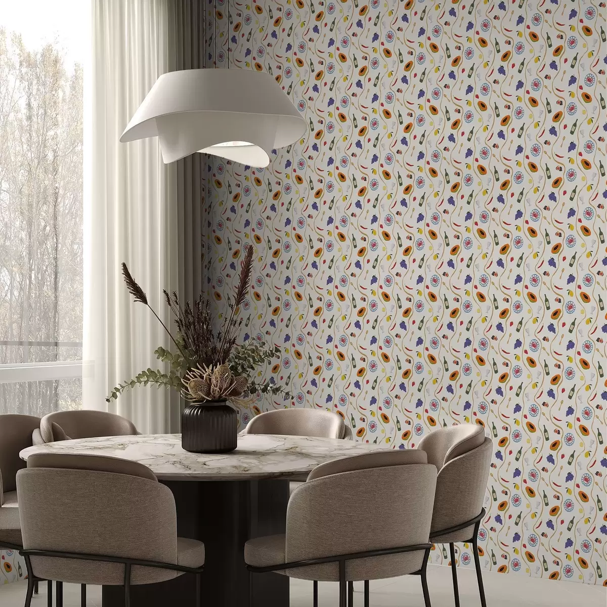 Tapeet Pudelid, papaia, sidrunid ja vürtsid heledal taustal Nr. a00802