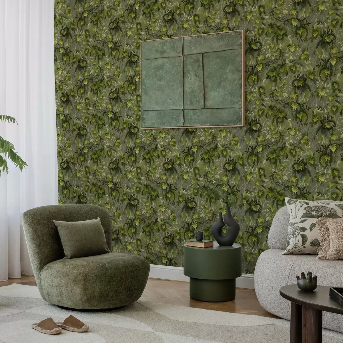 Tapeet Tihe roheline lehestik hallikasrohelisel taustal Nr. a00805v1