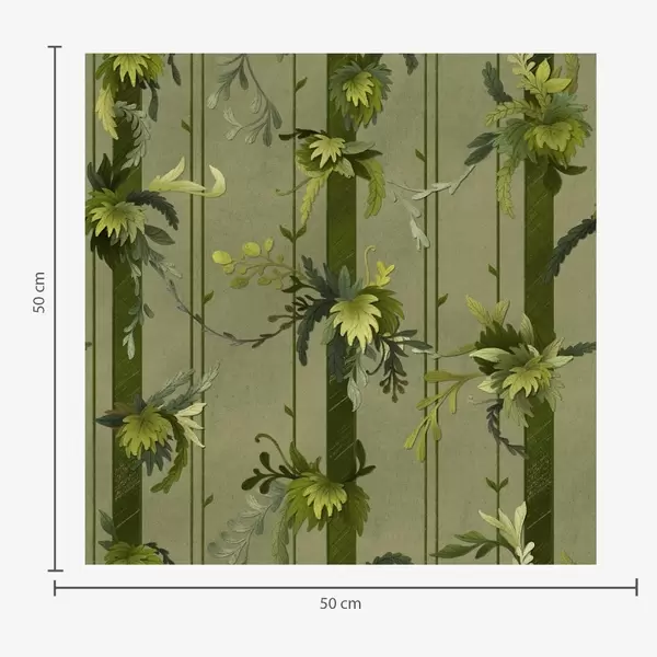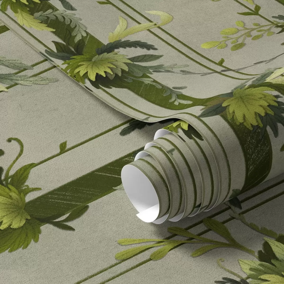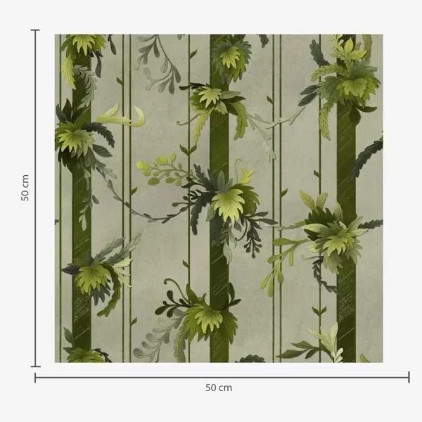 Tapeet Rohelised lehed vertikaalsete triipudega hallil taustal Nr. a00807v1