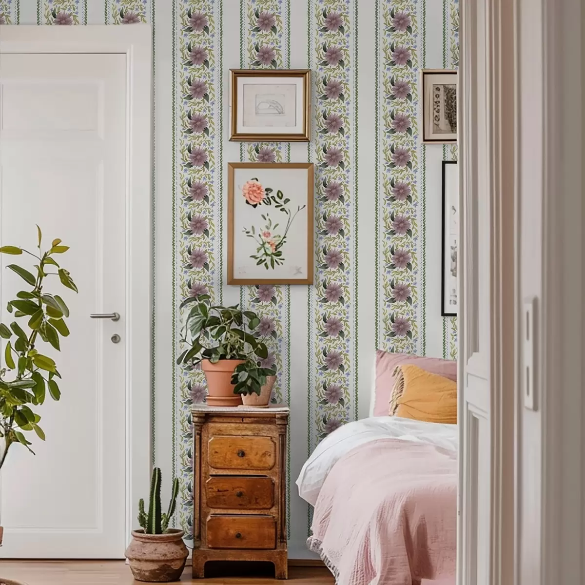 Tapeet Vertikaalsed lillemustrid lilla-sinistes toonides Nr. a00809