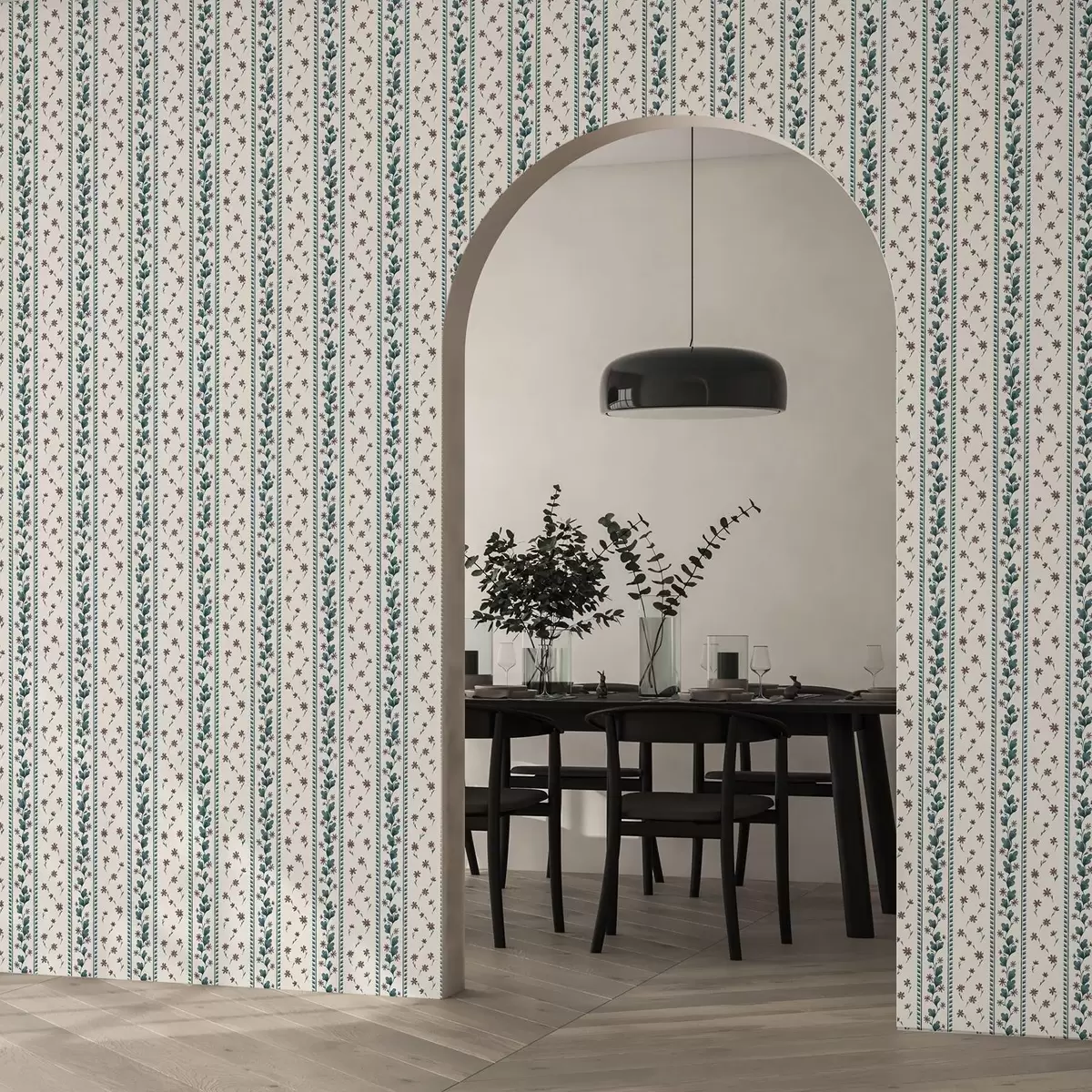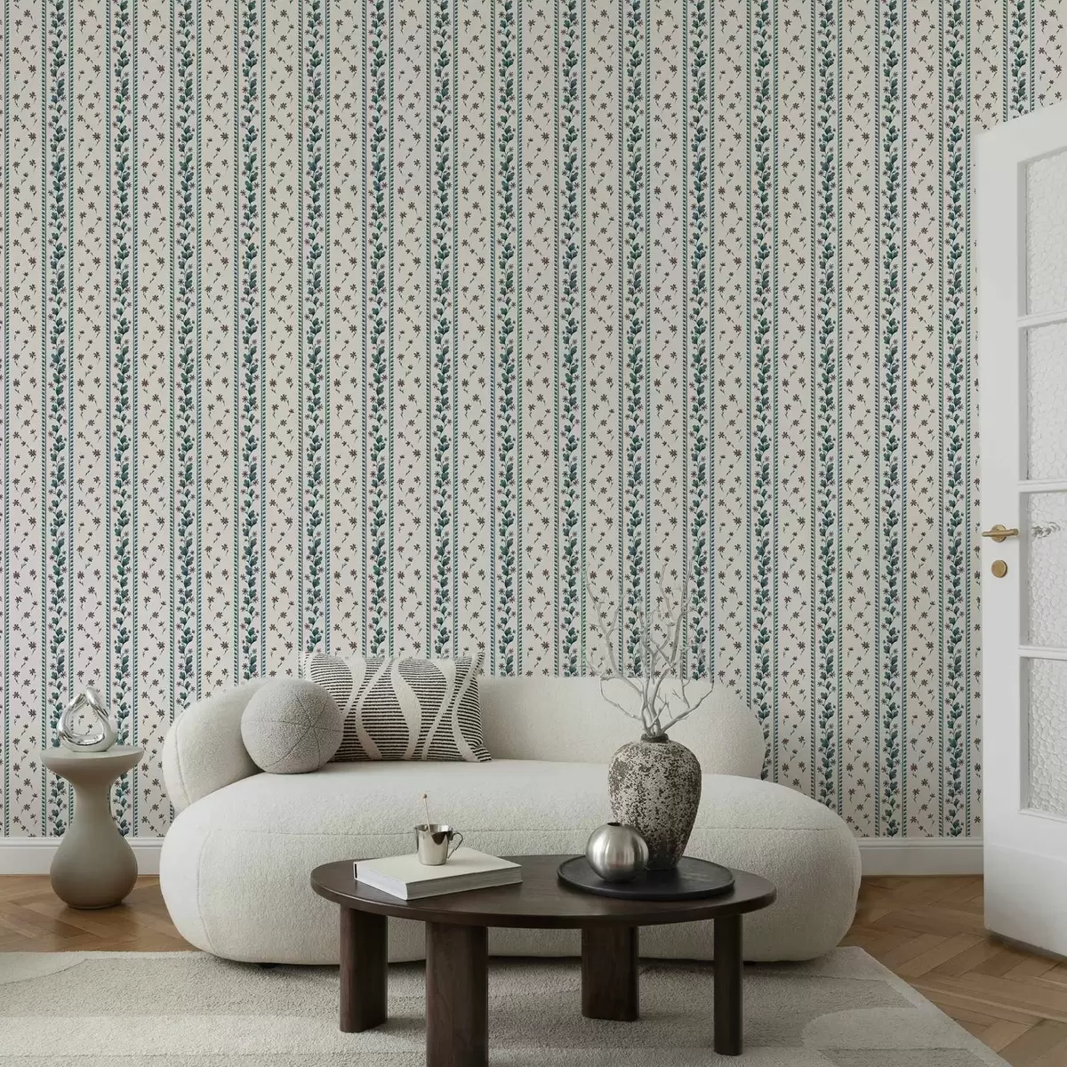 Tapeet Vertikaalsed lillelised triibud sinise-pruuni toonides a00811