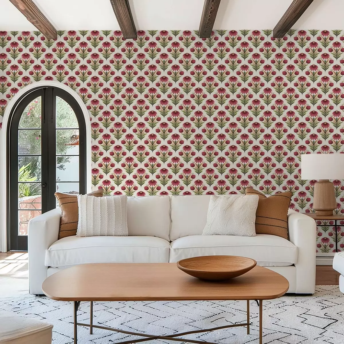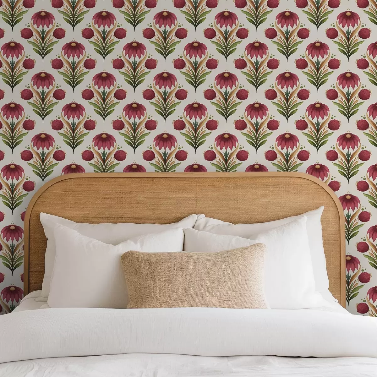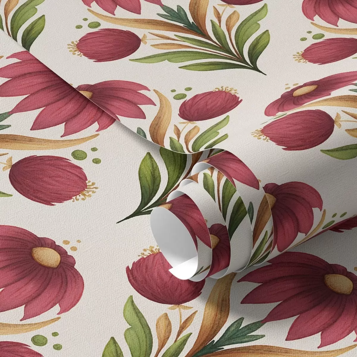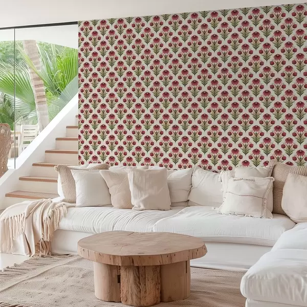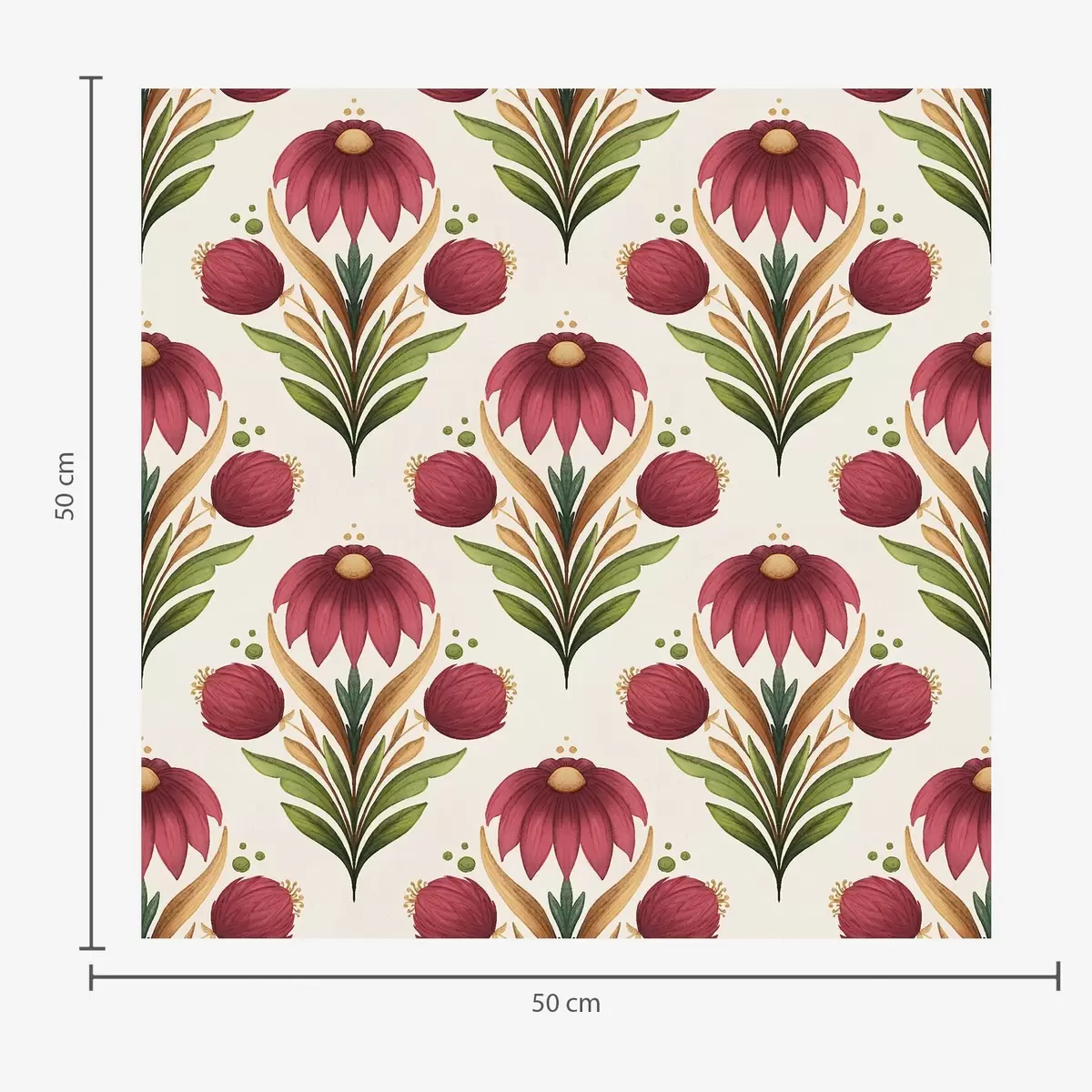 Tapeet Sümmeetriline lilleornament rikkalikes punase-rohelistes toonides Nr. a00812v4