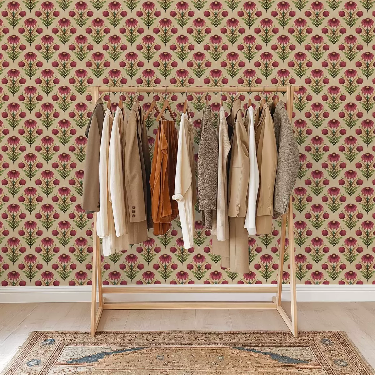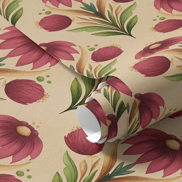 Tapeet Sümmeetriline lilleornament soojal beežil taustal Nr. a00812v6
