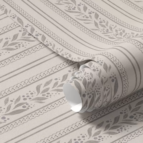 Tapeet Triibud pitsiga ja hallikaspruunide okstega Nr. a00814