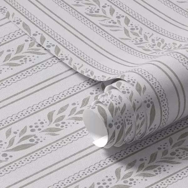 Tapeet Triibud pitsiga ja okstega jahedal valgel taustal Nr. a00814v1