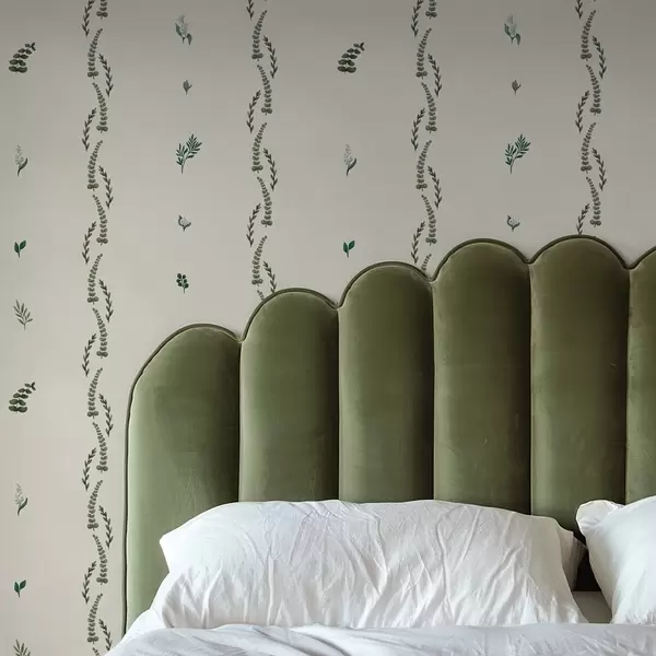 Tapeet Hõredad rohelised võrsed vertikaalses rütmis, kreemikas taust Nr. a00818