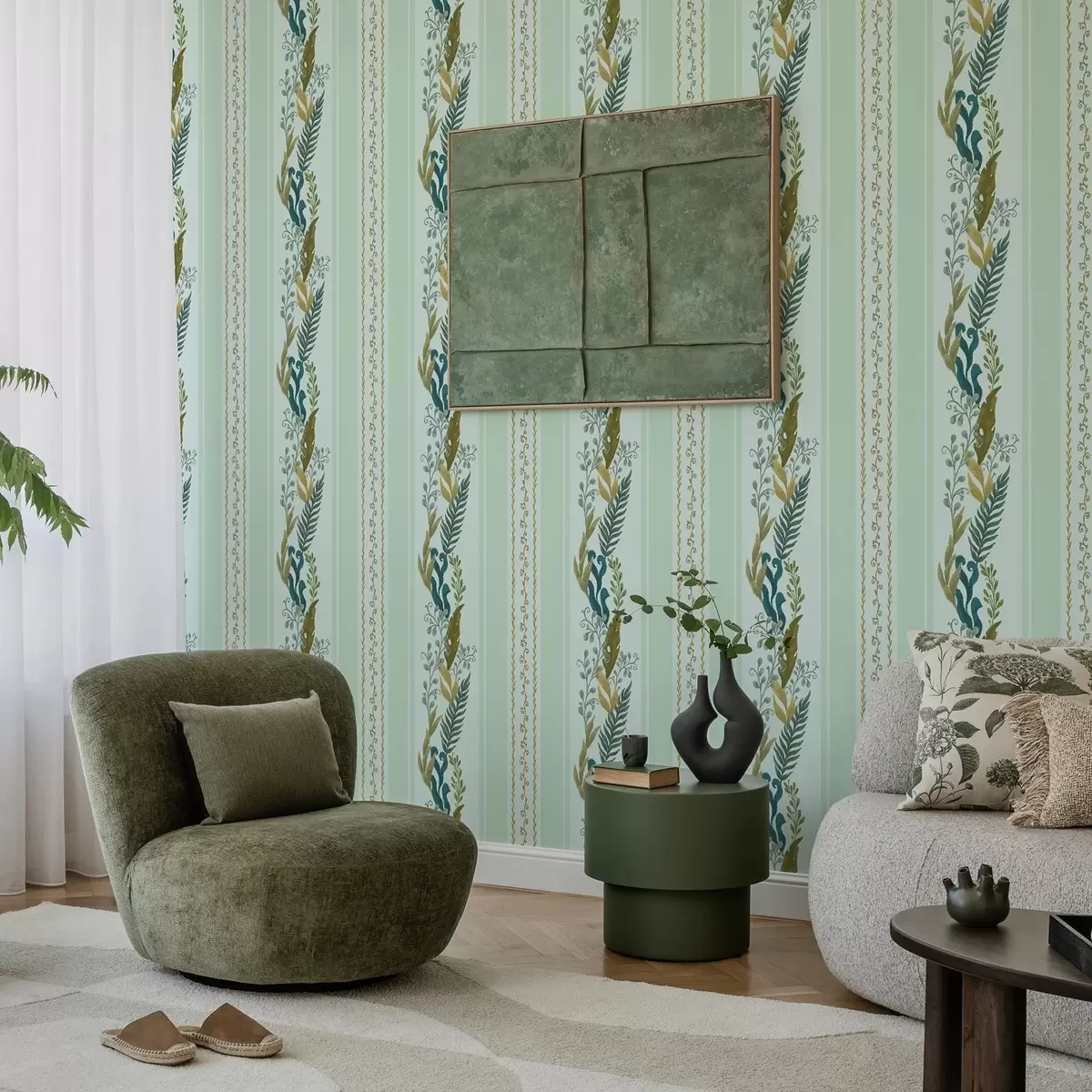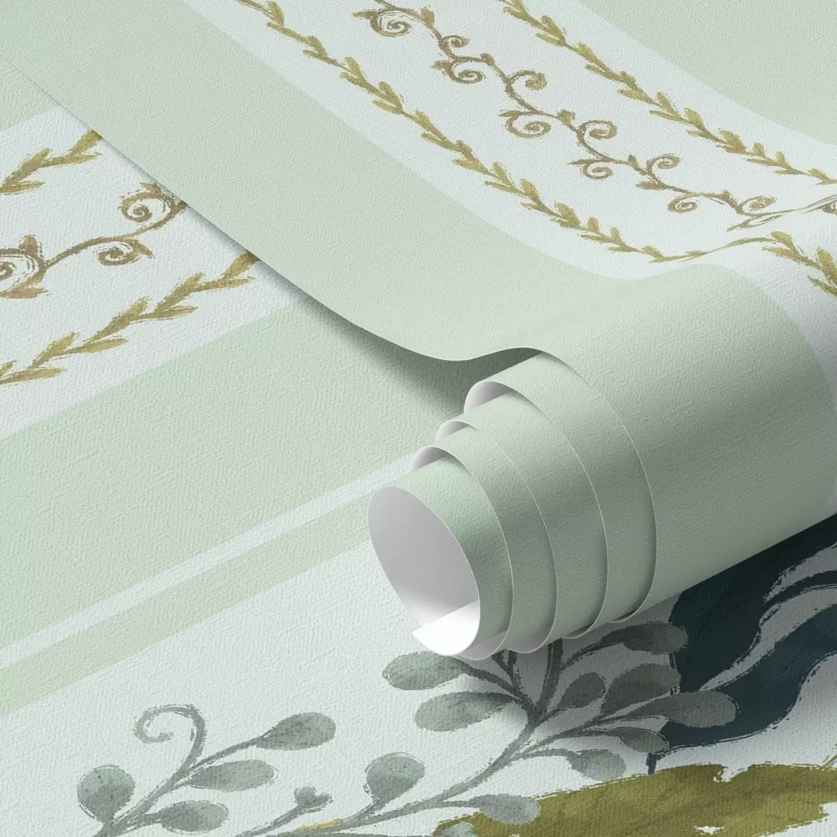 Tapeet Laiad triibud maaliliste okstega pehme mündi taustal Nr. a00825v1