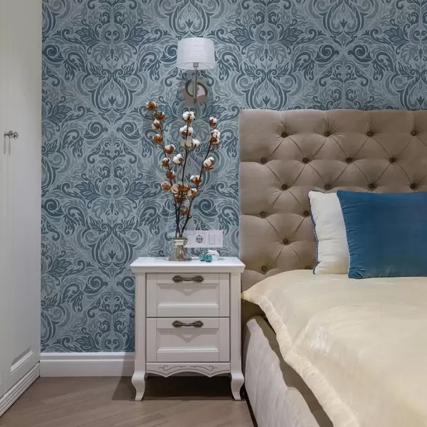 Tapeet Klassikaline damask, tumesinine helesinisel taustal Nr. a00826