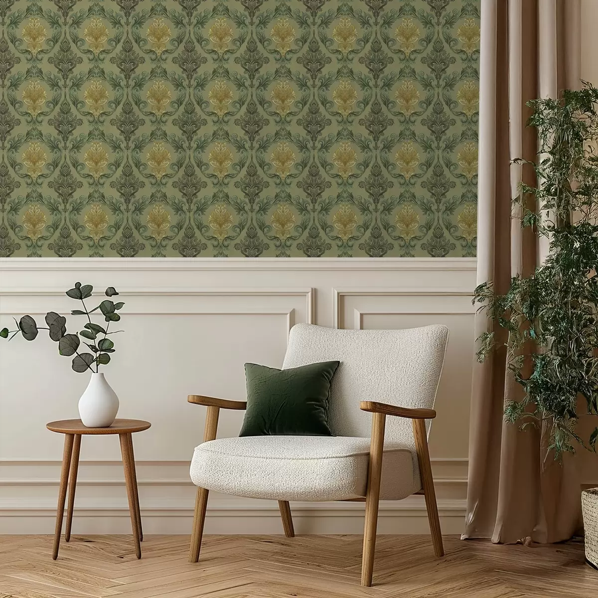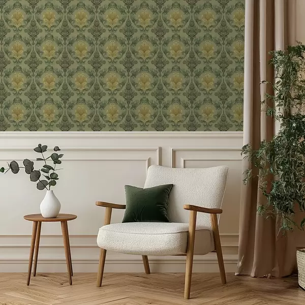 Tapeet Damask taimseid keerukujundeid, oliivi-okra värvipalett Nr. a00828