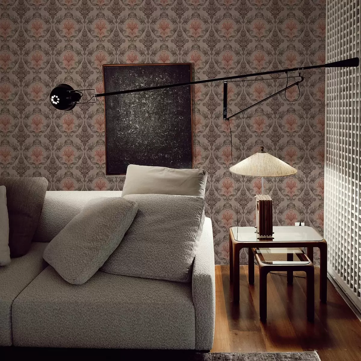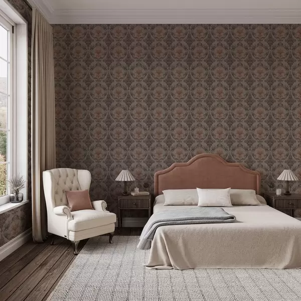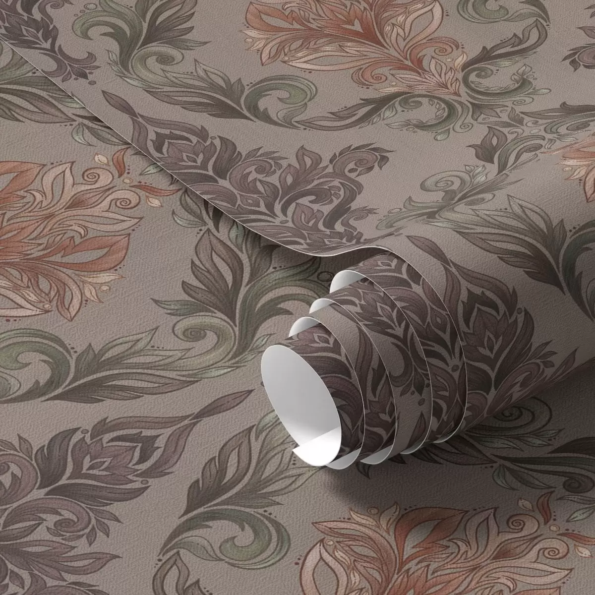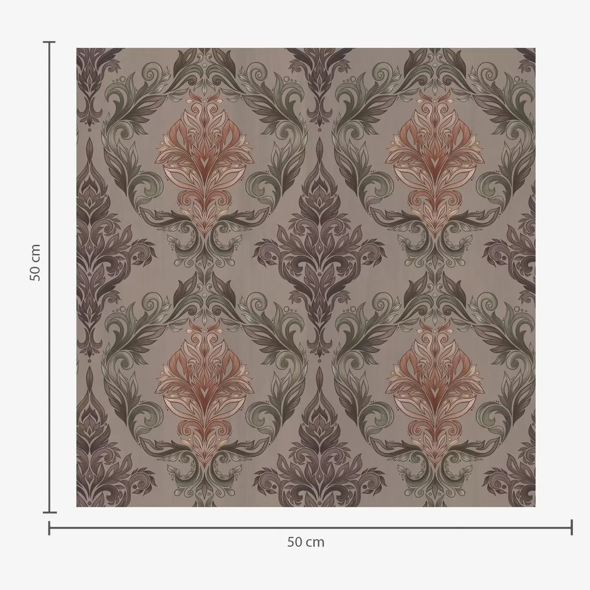 Tapeet Damask pruuni-terrakota värvipalett, soe hall taust Nr. a00828v2