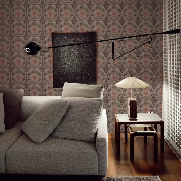 Tapeet Damask pruuni-terrakota värvipalett, soe hall taust a00828v2