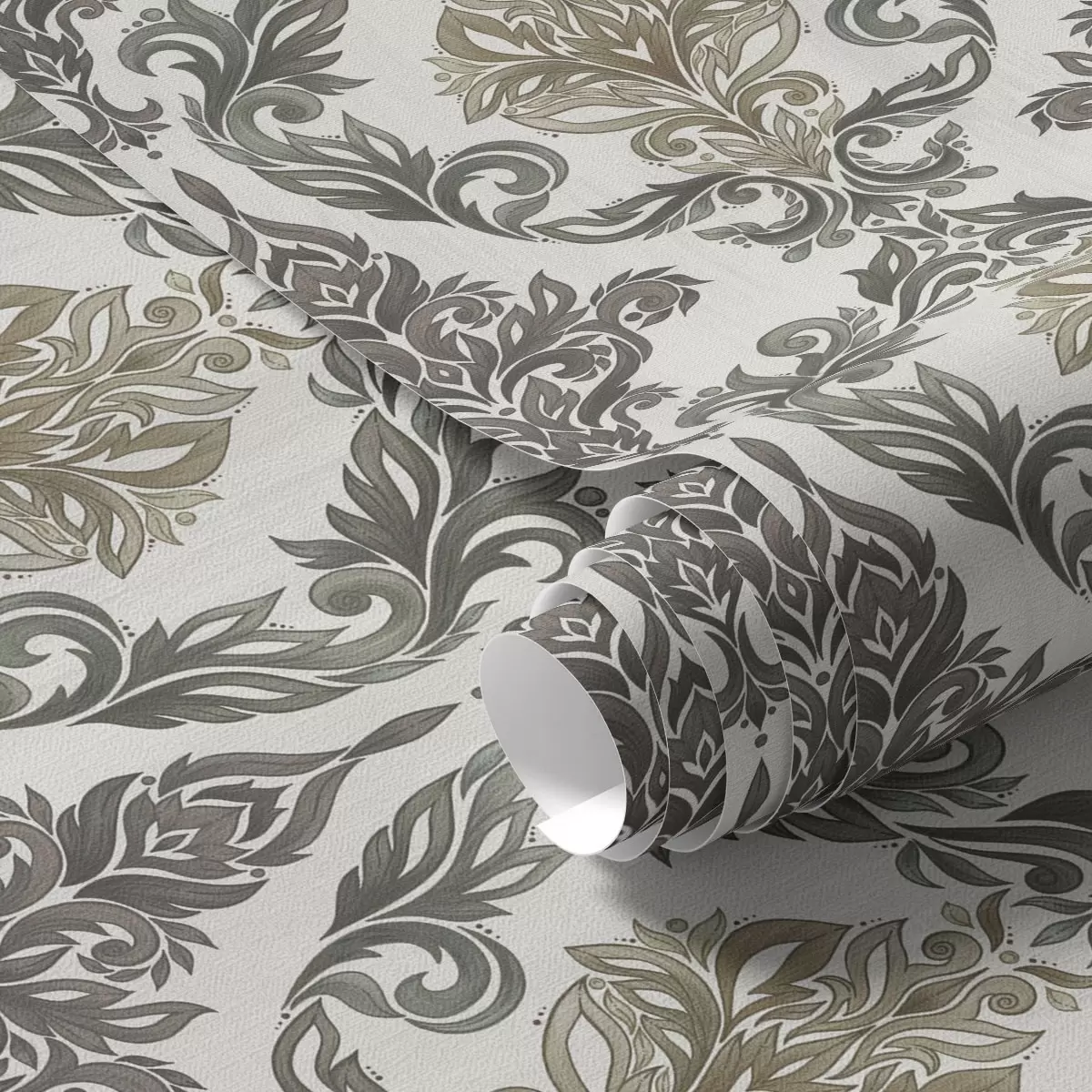 Tapeet Damask hele taustal, oliivrohelise pronksiga aksendid Nr. a00828v6