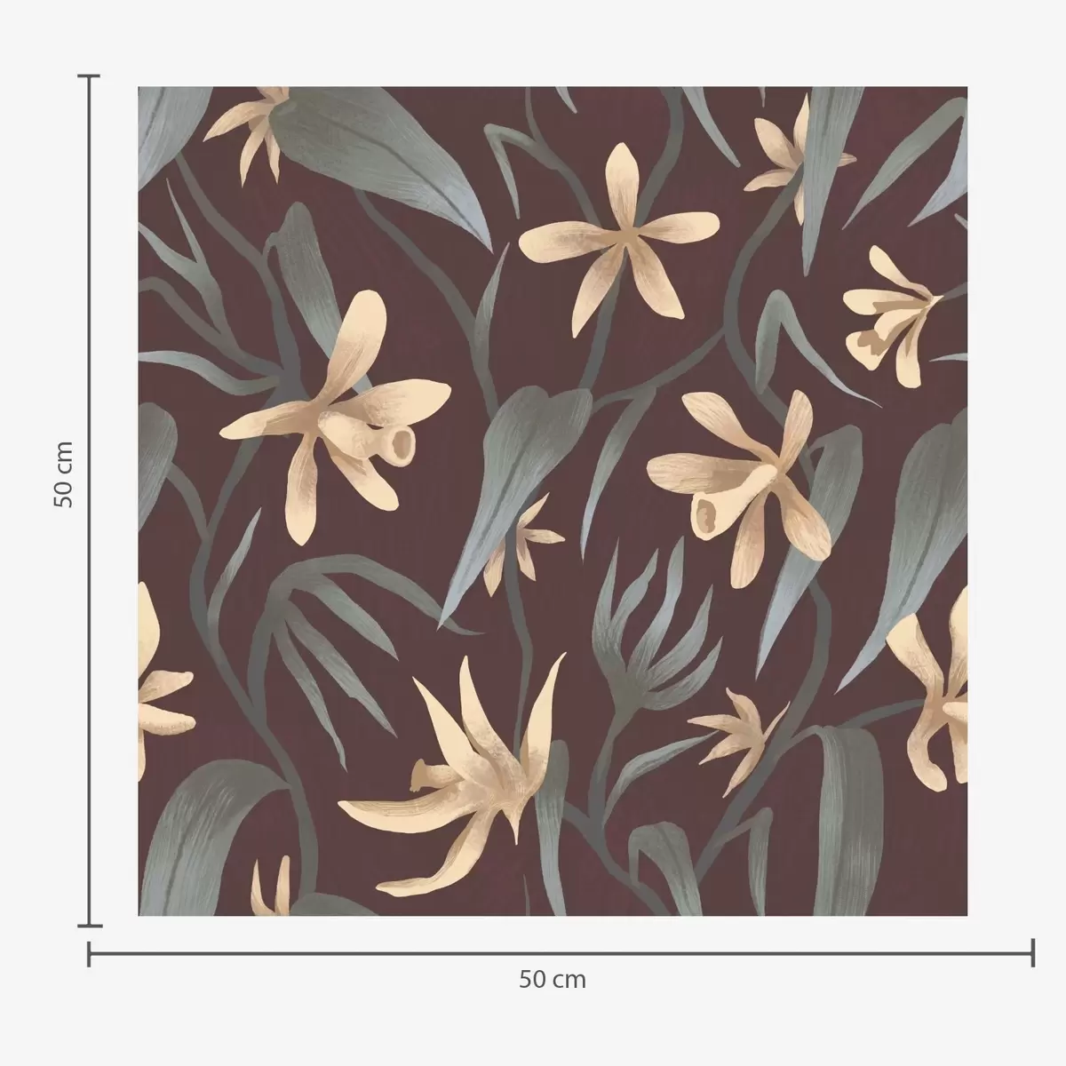 Tapeet Kreemikad lilled hallide lehtedega burgundia taustal Nr. a00833