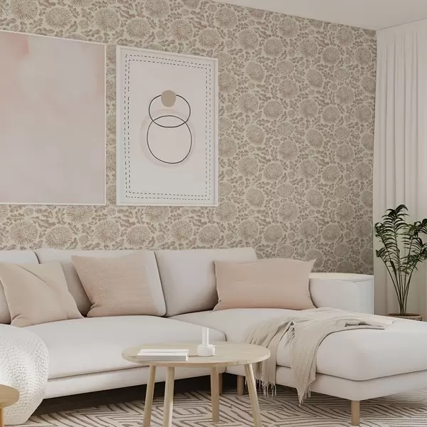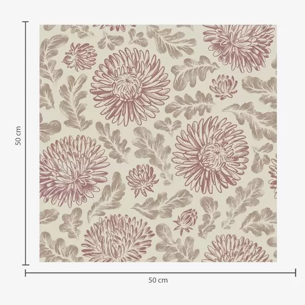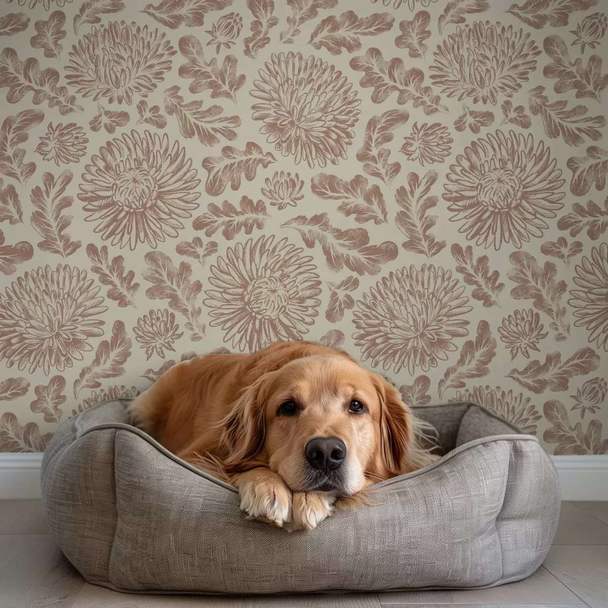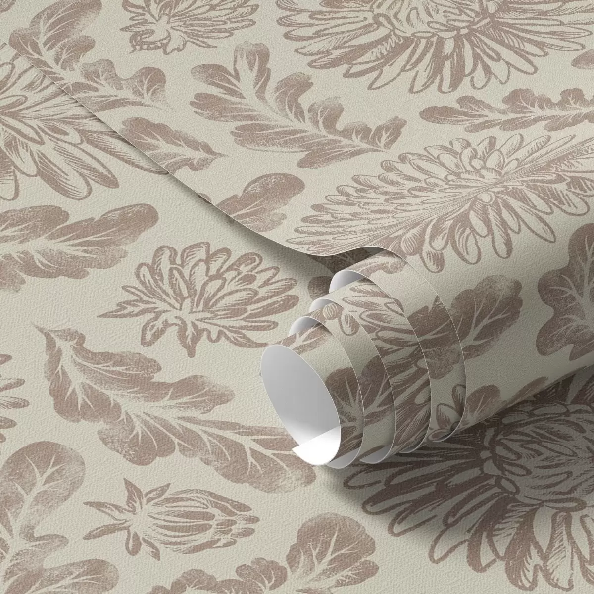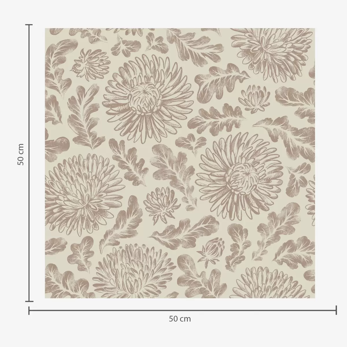 Tapeet Krüüsanteemid ja tamme lehed pehmes beež-pruunis toonis Nr. a00840