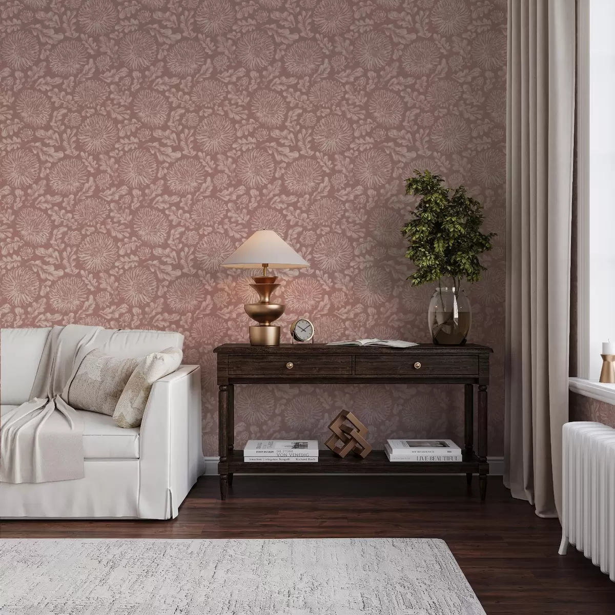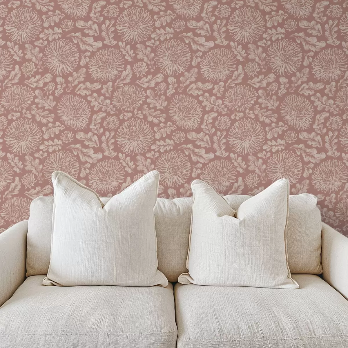 Tapeet Kreemikarva krüsanteemid tolmuroosa taustal Nr. a00840v2
