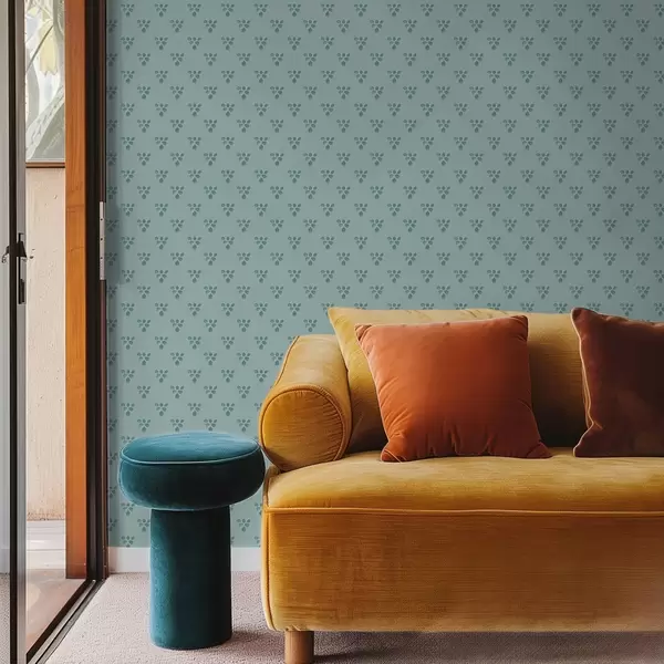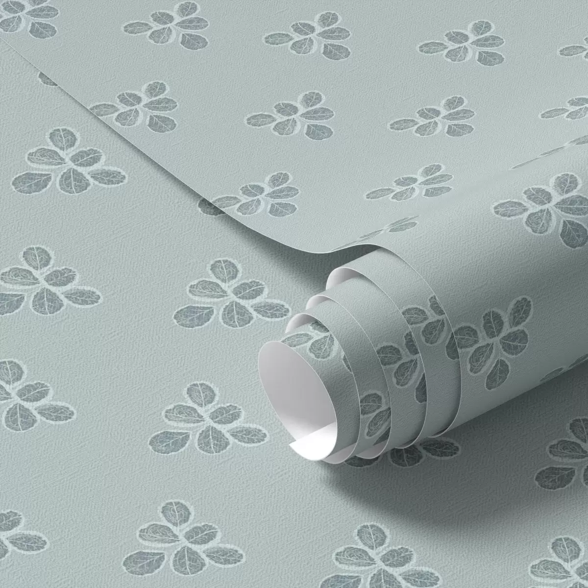 Tapeet Väike kordus: lehtede kolmikud jahedal sinisel taustal Nr. a00848v1