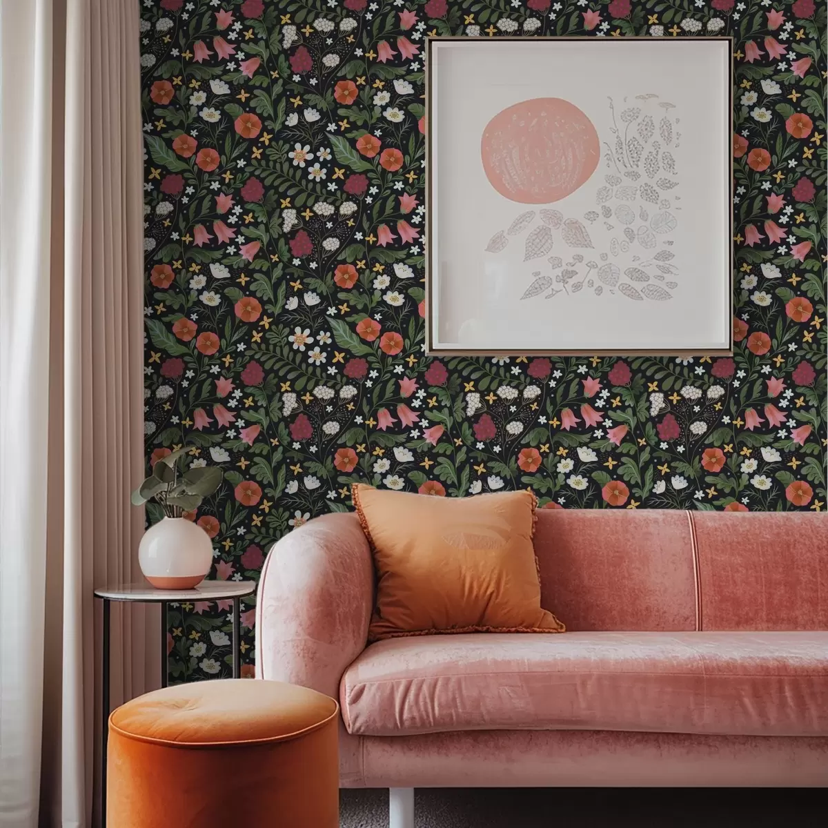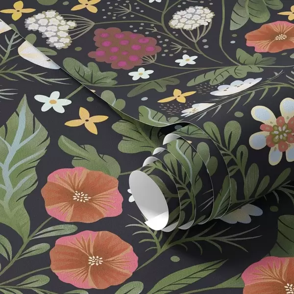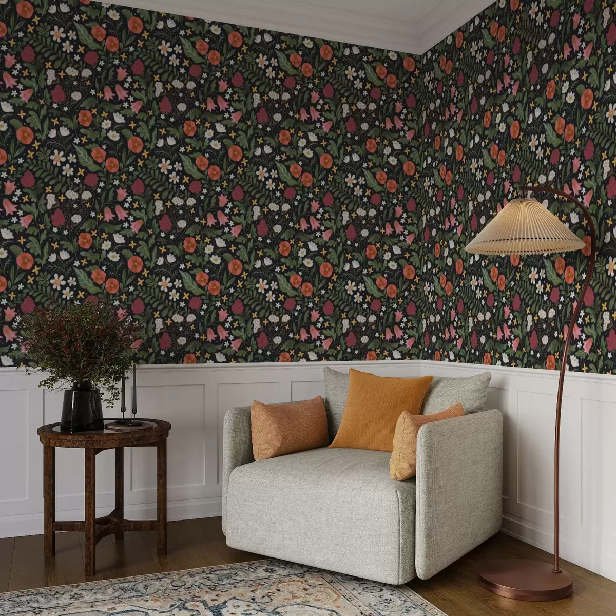 Tapeet Looduslilled ja marjad sügaval mustal taustal Nr. a00849v3