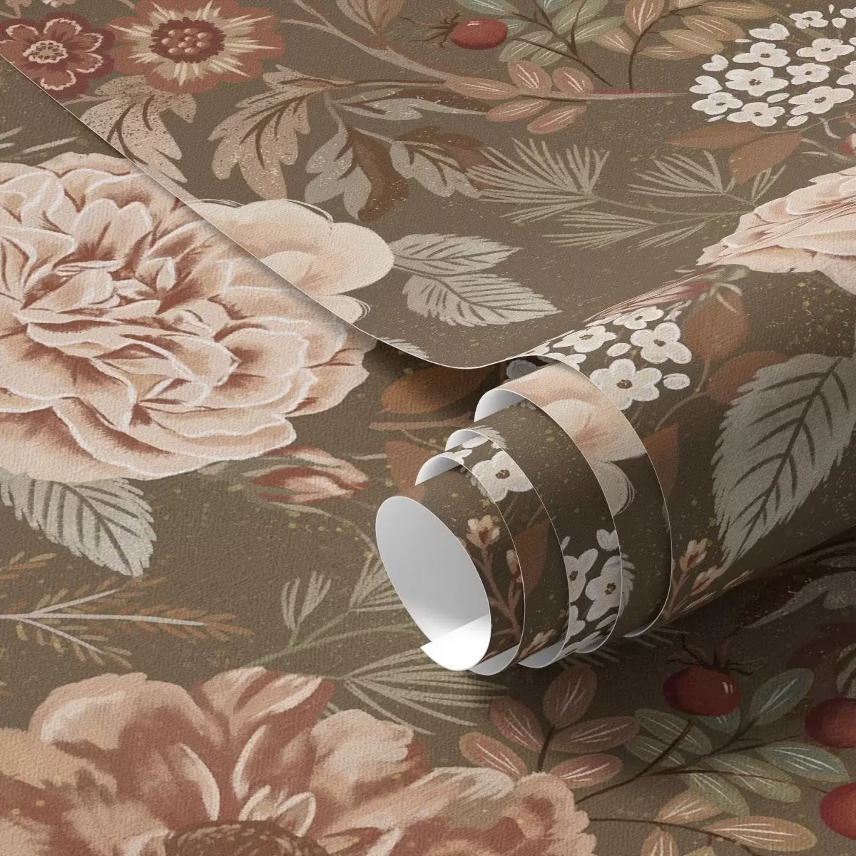 Tapeet Soojad roosid ja marjad pruuni taustal Nr. a00868
