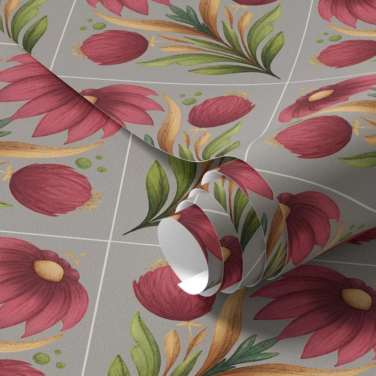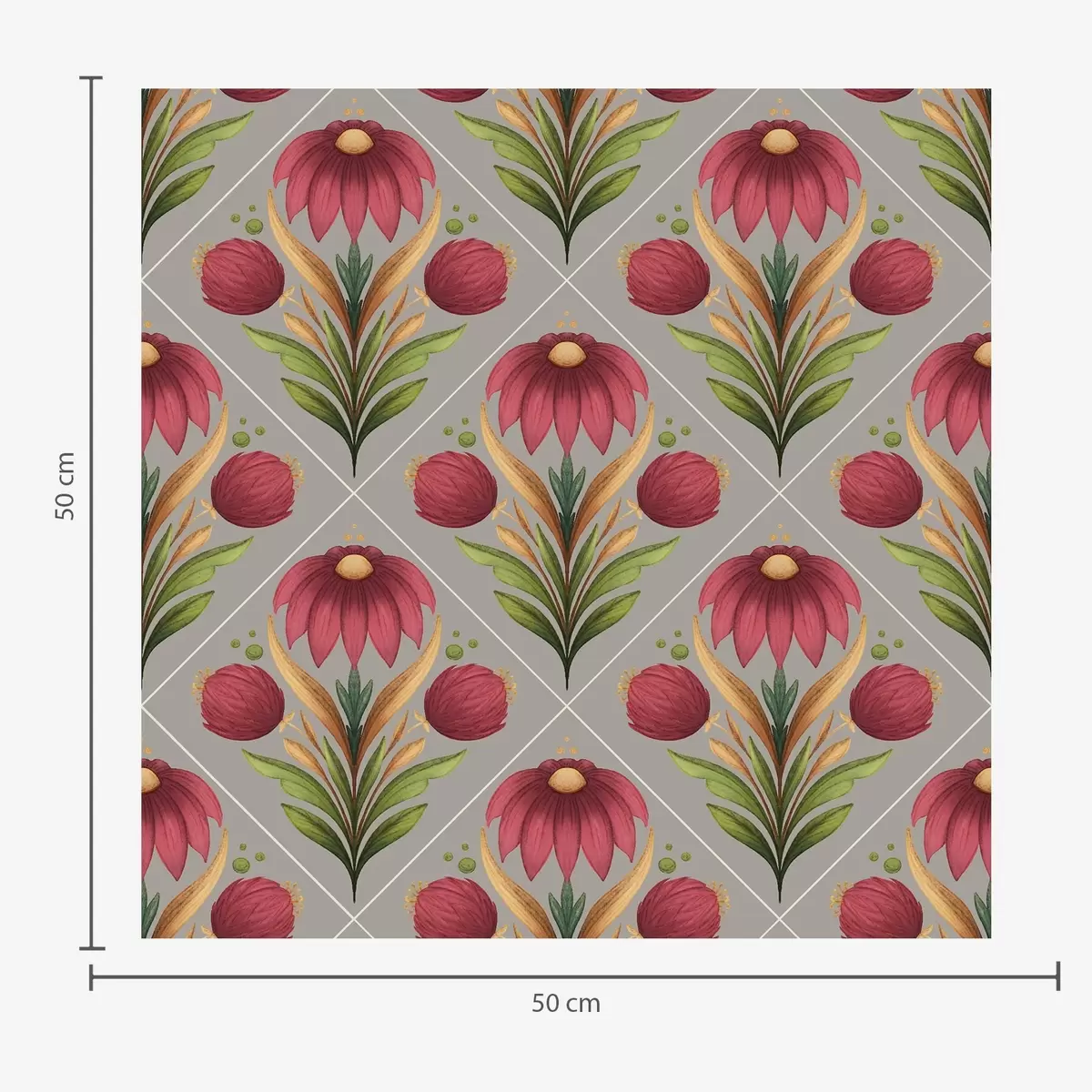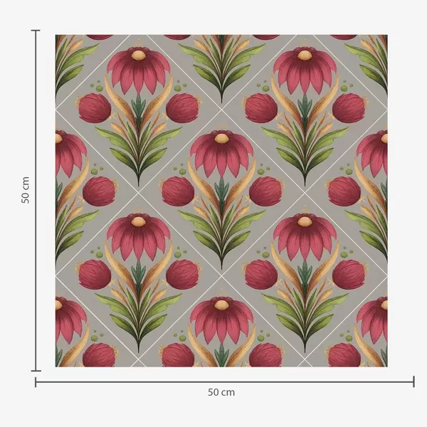 Tapeet Sümmeetriline lilleornament hallil taustal diagonaalidega Nr. a00869
