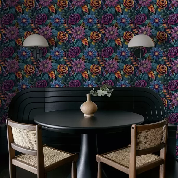 Tapeet Erevad juveelitoonidega lilled tumesinisel taustal Nr. a00871