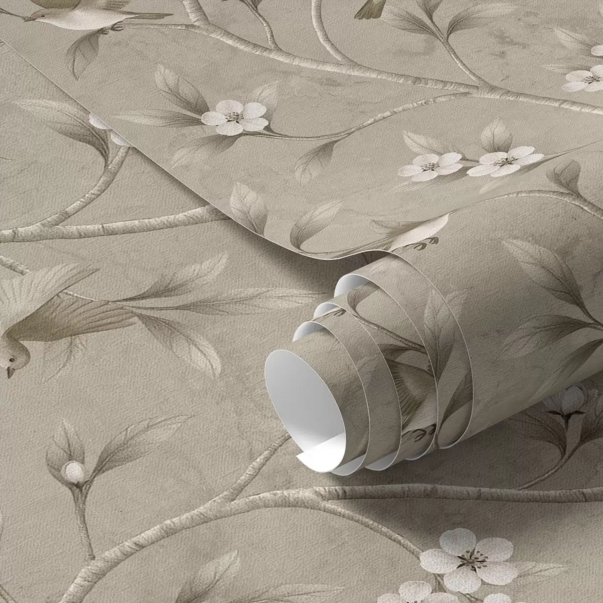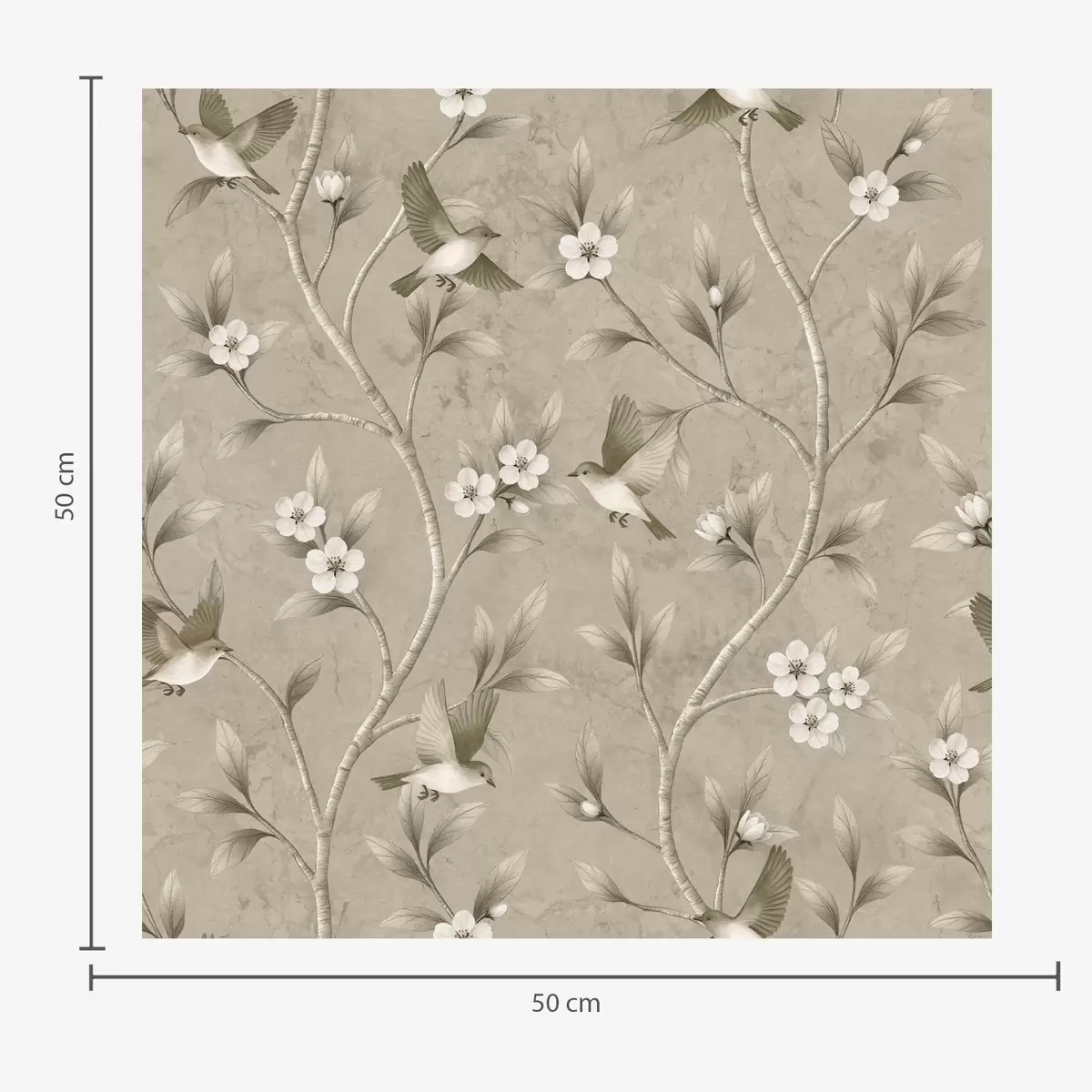 Tapeet Linnud ja õitsevad oksad soojades seepia toonides Nr. a00882