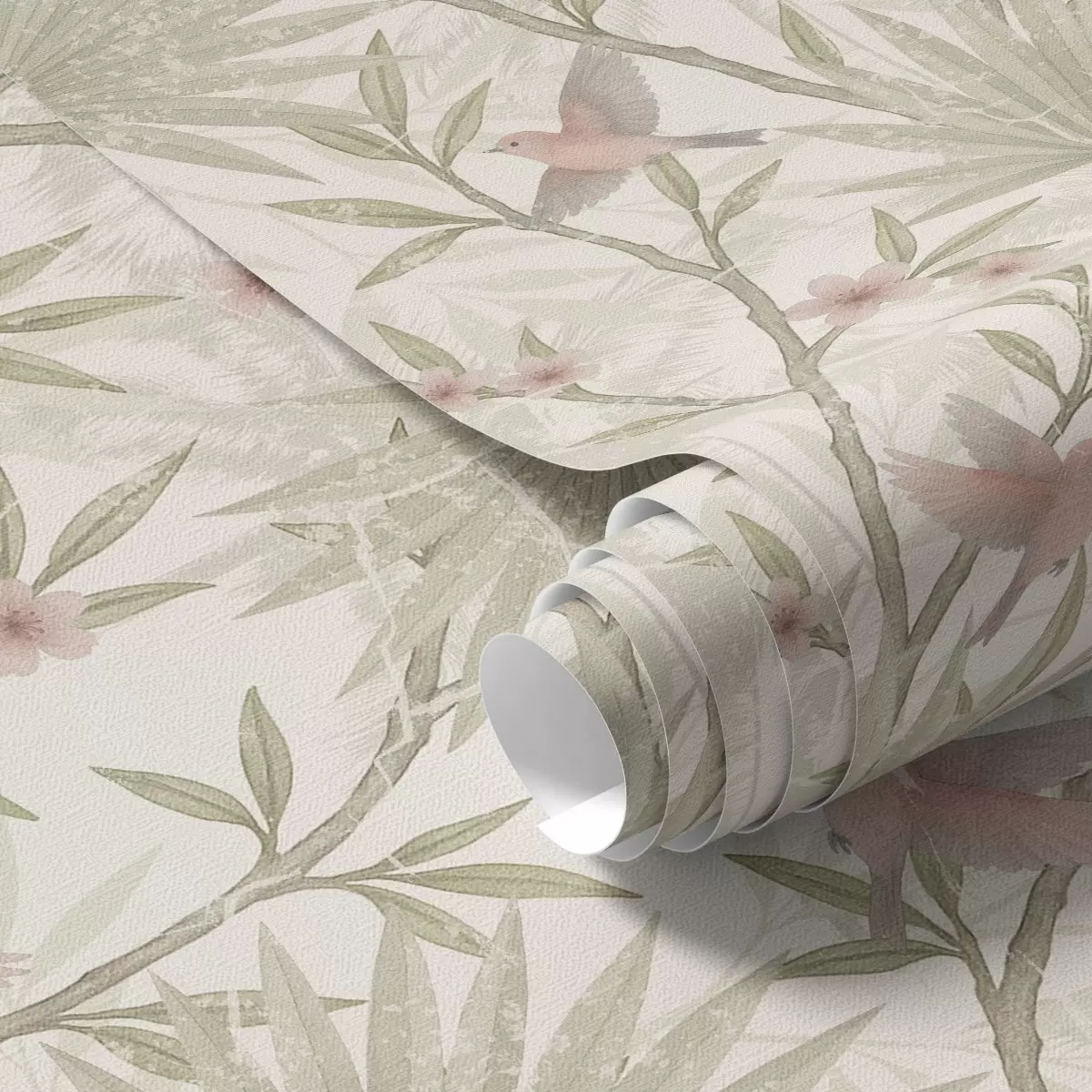 Tapeet Õrnad roosad linnud palmilehtede vahel Nr. a00883